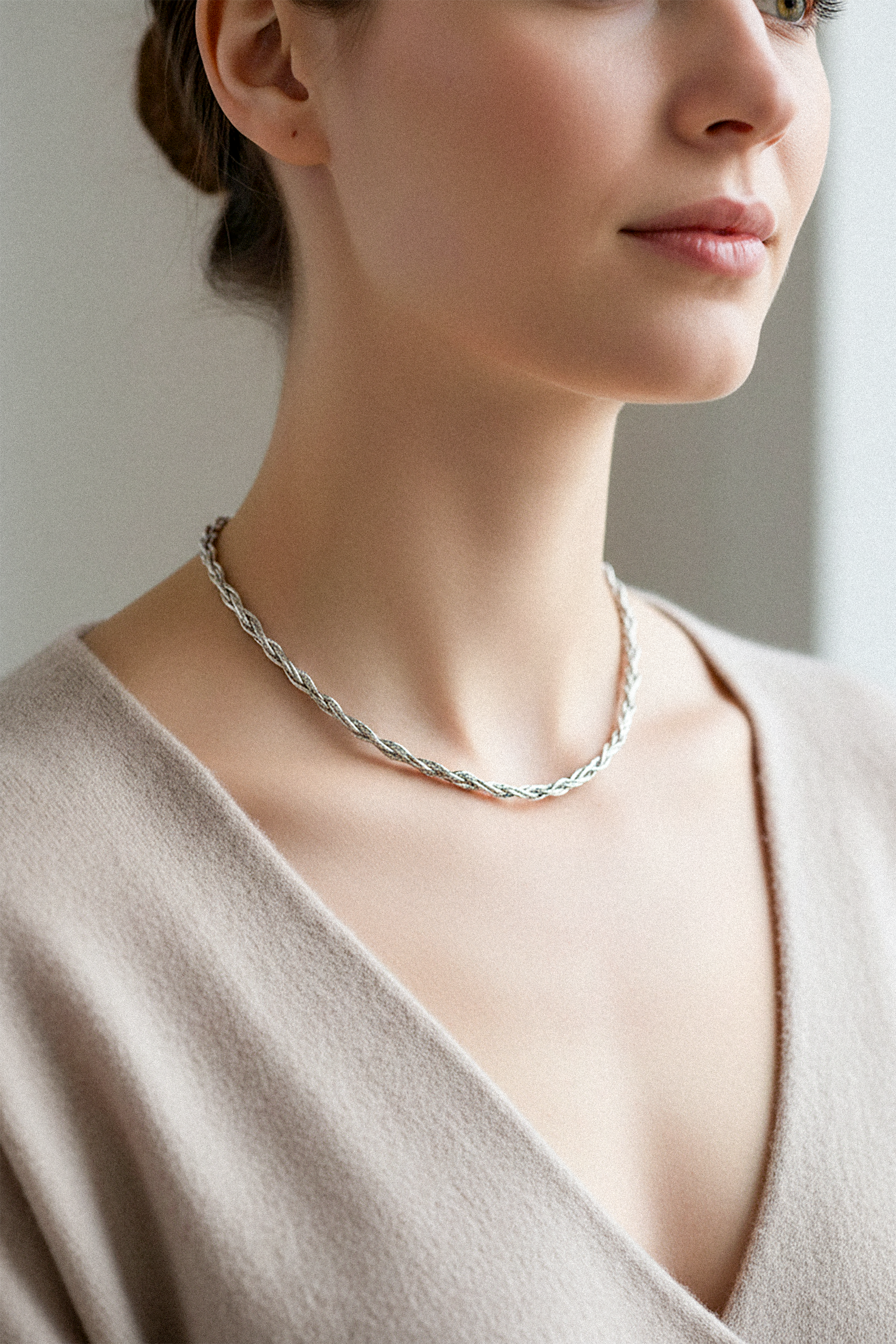 Ce collier artisanal en argent sterling 925 présente un tressage de plusieurs brins d'argent, pour un style élégant et raffiné. Son fermoir robuste assure une sécurité optimale, tandis que sa texture unique lui confère une touche d'originalité. Parfait au quotidien comme pour les grandes occasions, il se porte aussi bien seul qu'en accumulation avec d'autres bijoux.