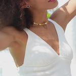 Fabriqués à partir de matériaux de haute qualité, nos bijoux sont résistants à l'eau et ne doivent pas ternir avec le temps. N'exposez pas les bijoux à la sueur, à l'eau, aux parfums, à l'alcool ou à d'autres substances pour vous assurer que le placage d'or n'est pas endommagé. Parce que nos bijoux sont plaqués d'or véritable, ils s'oxyderont également avec le temps. Nous recommandons de nettoyer tous les bijoux avec un tampon au bicarbonate tous les 6 mois pour un maximum de brillance. Avec le traitement et les soins appropriés, vos petits trésors peuvent rester beaux pendant longtemps et vos bijoux auront toujours l'air neufs.