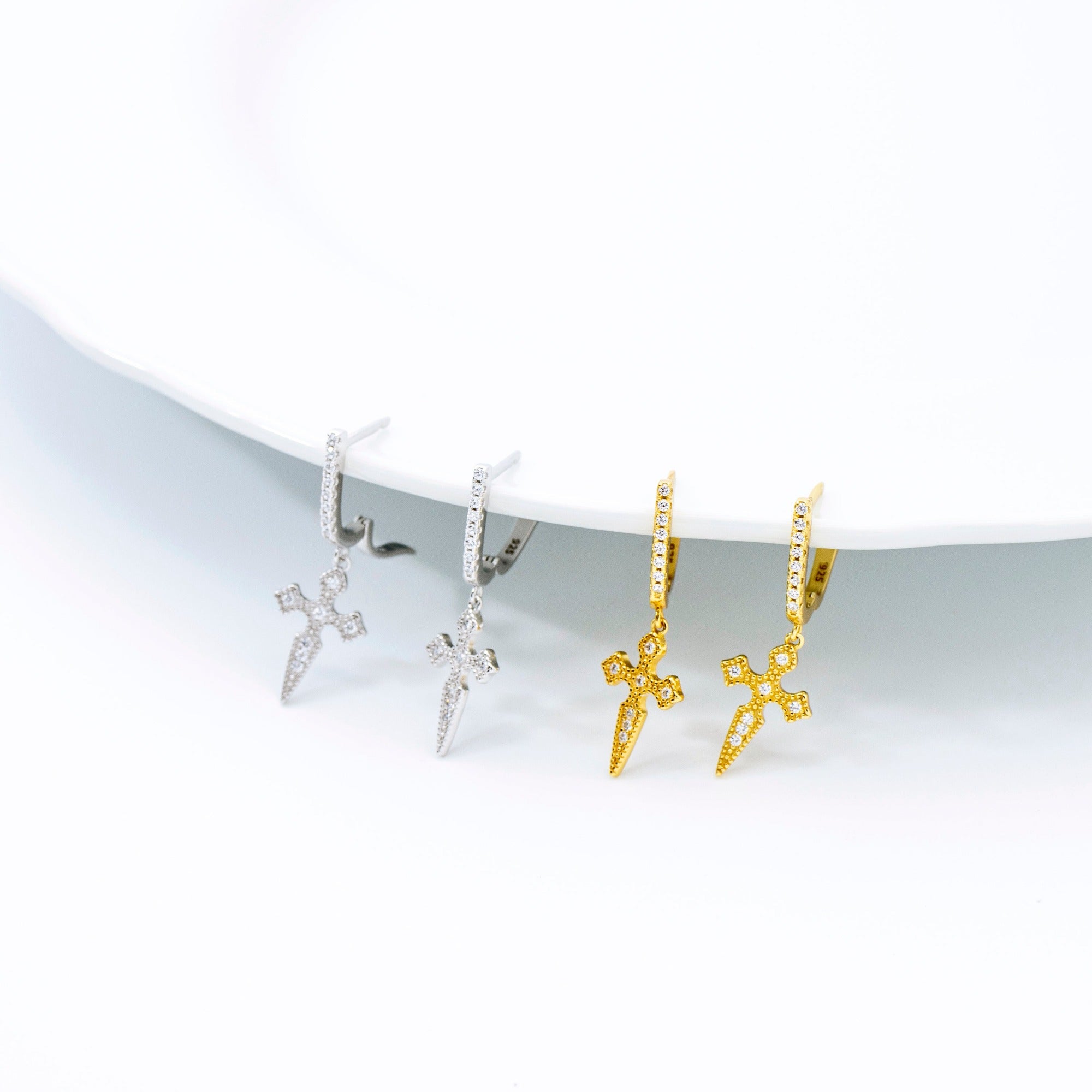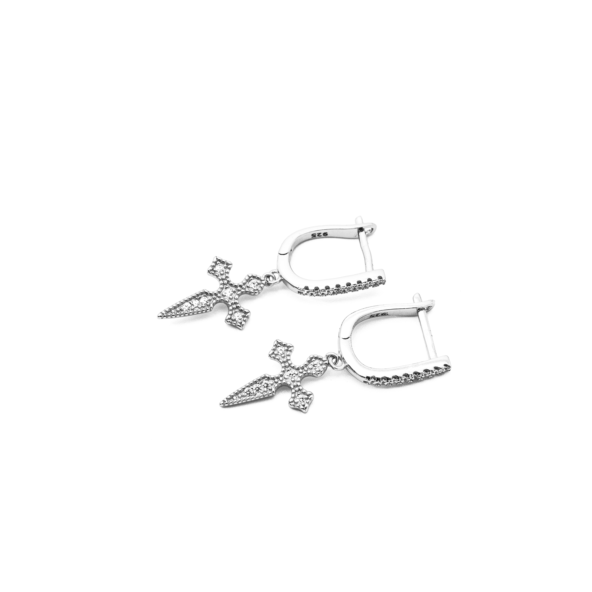 Boucles d'oreilles CAMRYN en argent avec croix royale - Argent 925 et zirconias