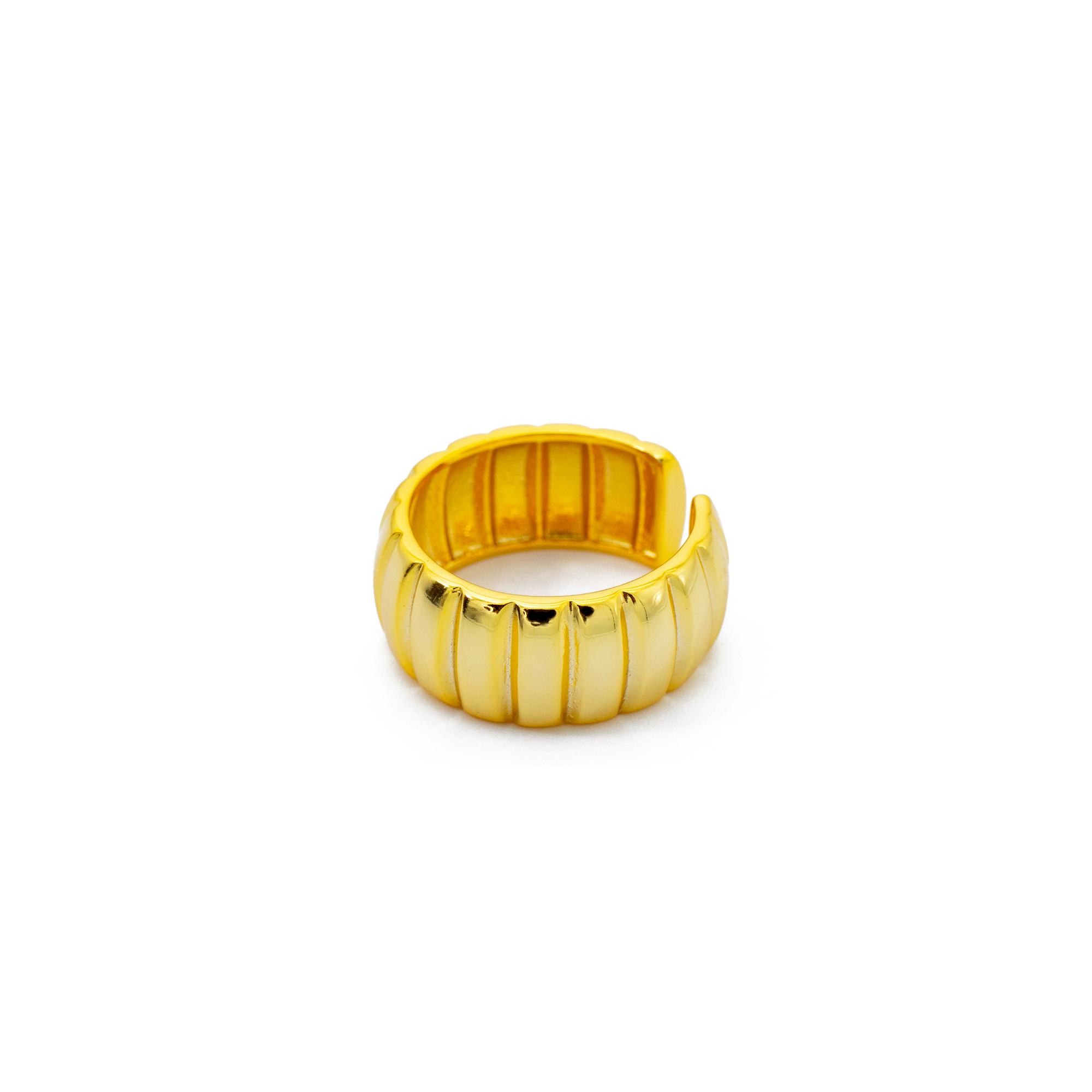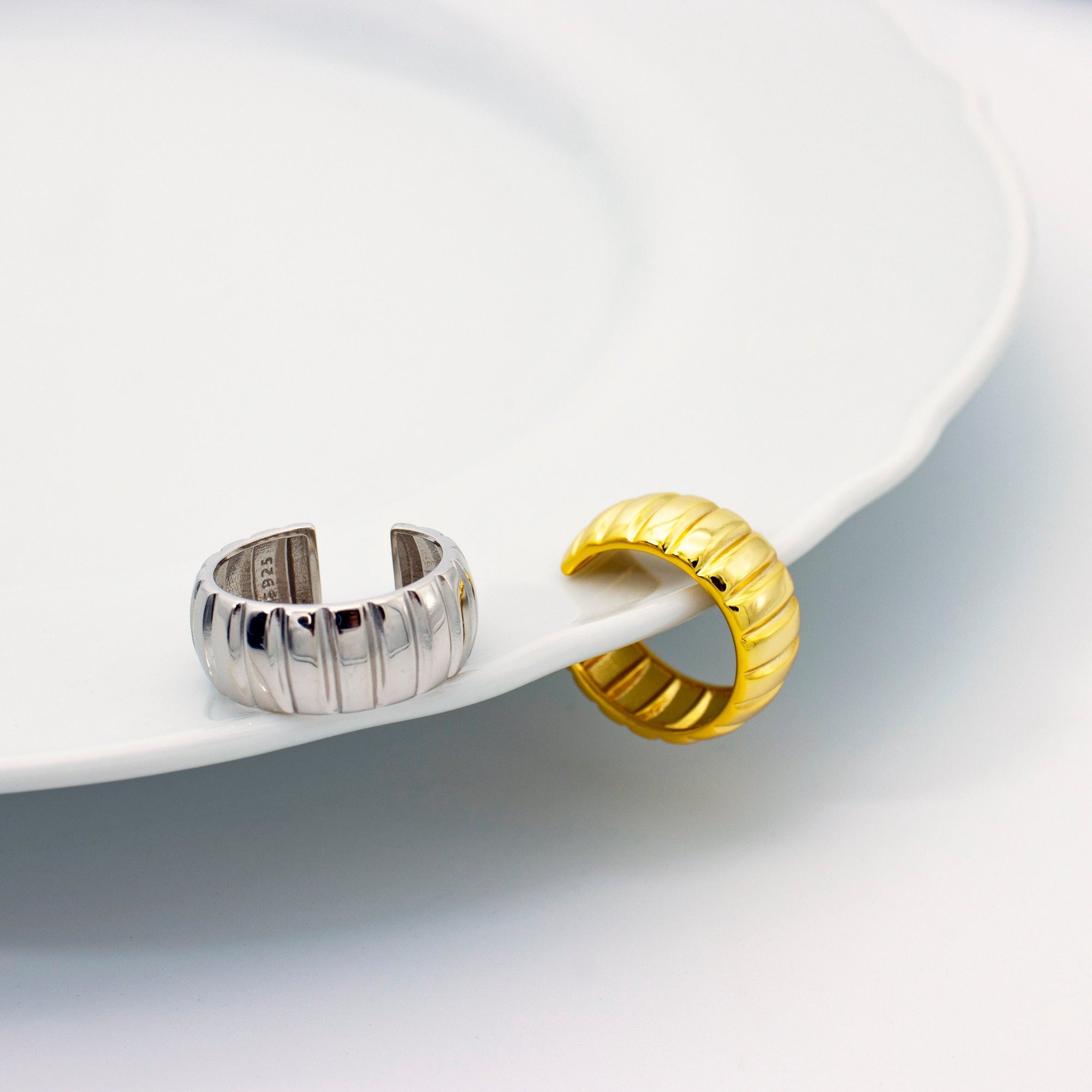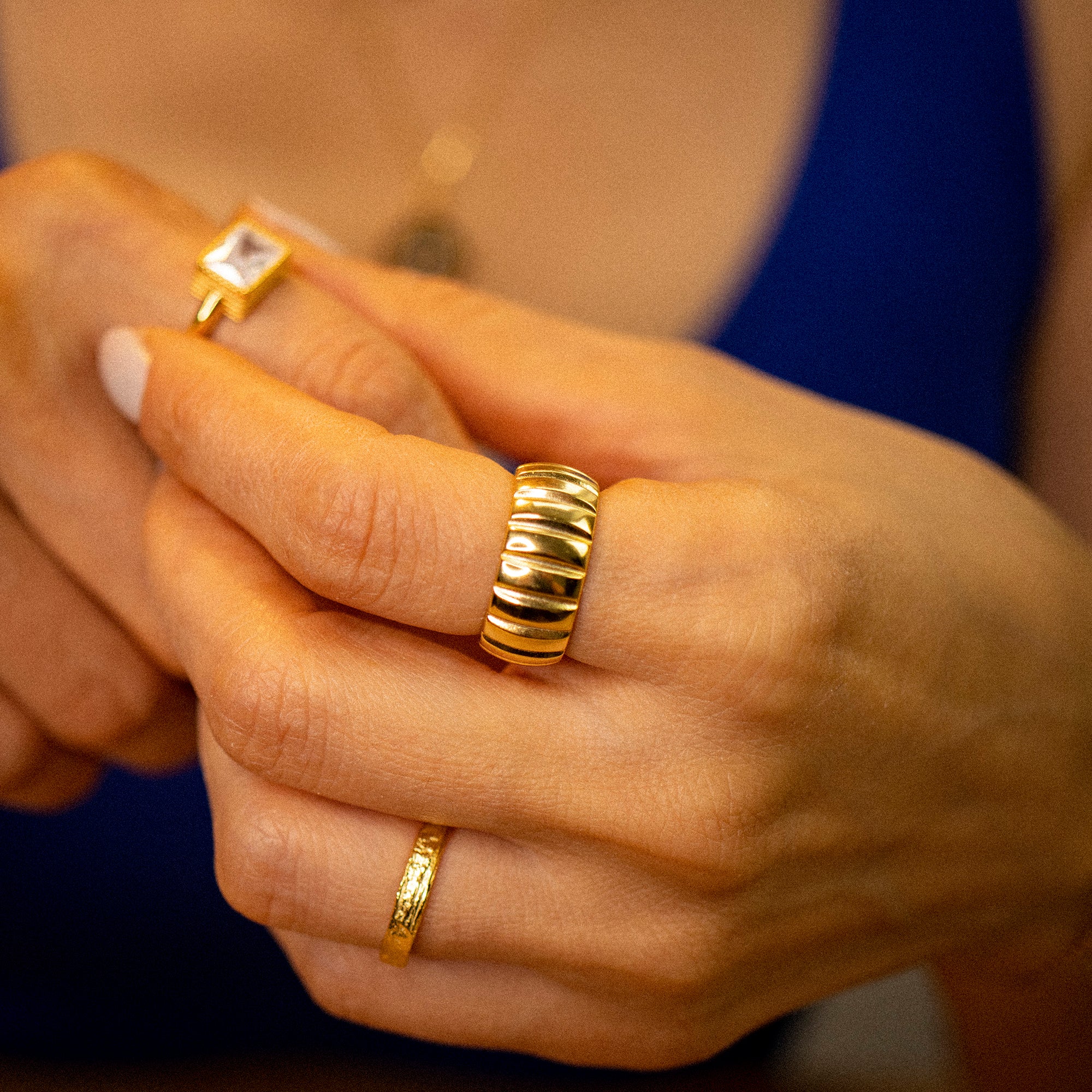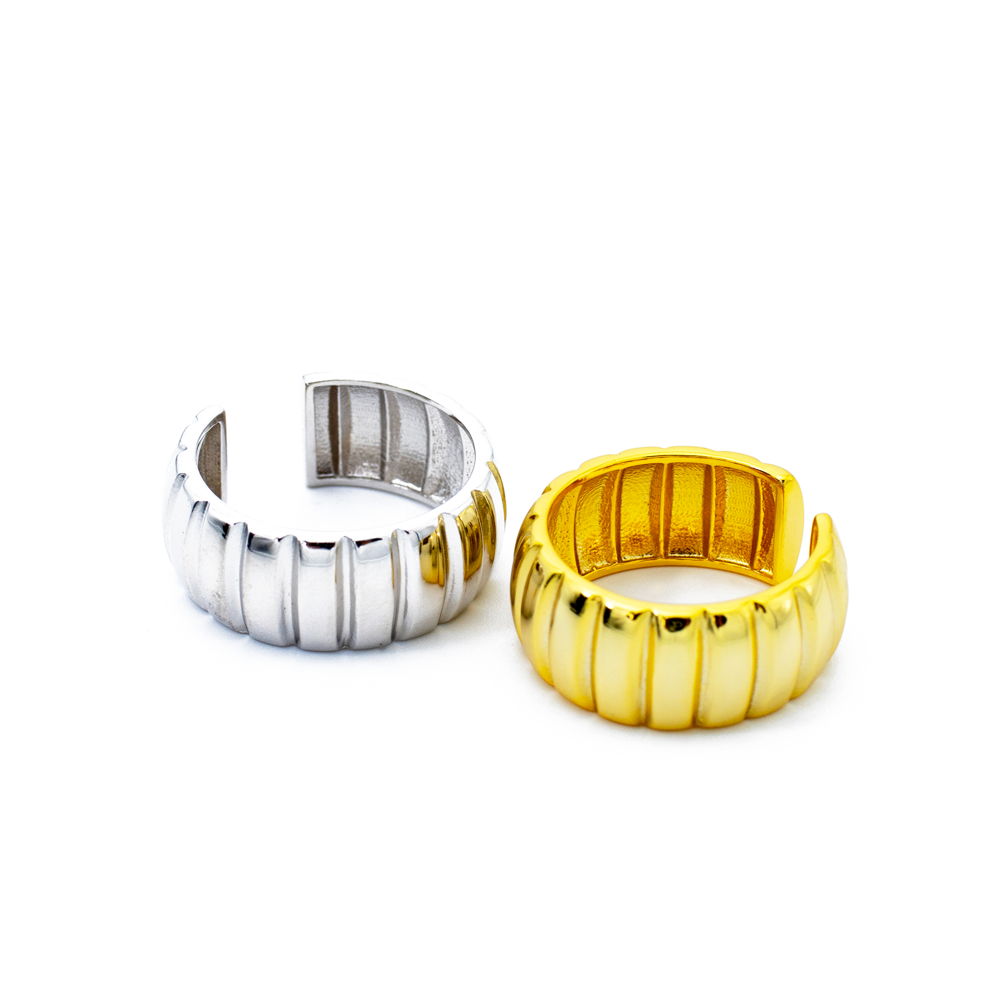Avec sa finition moderne et délicate, cette bague bandeau est un talent absolu pour les combinaisons ! Il présente un design à rayures qui rappelle un système d’engrenage ou un dispositif mécanique. La large bande annulaire assure un ajustement confortable.
