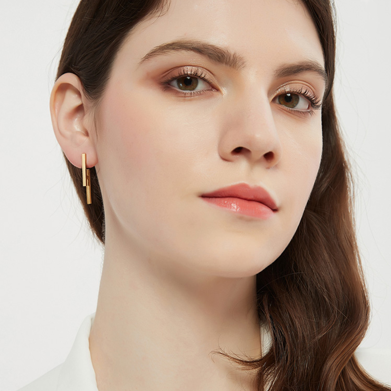 Que ce soit pour une touche discrète au quotidien ou comme détail unique dans votre style de bijoux, ces boucles d'oreilles pendantes claires affirment votre personnalité. Leur design en forme de lettre est particulièrement élégant associé à d'autres bijoux minimalistes.