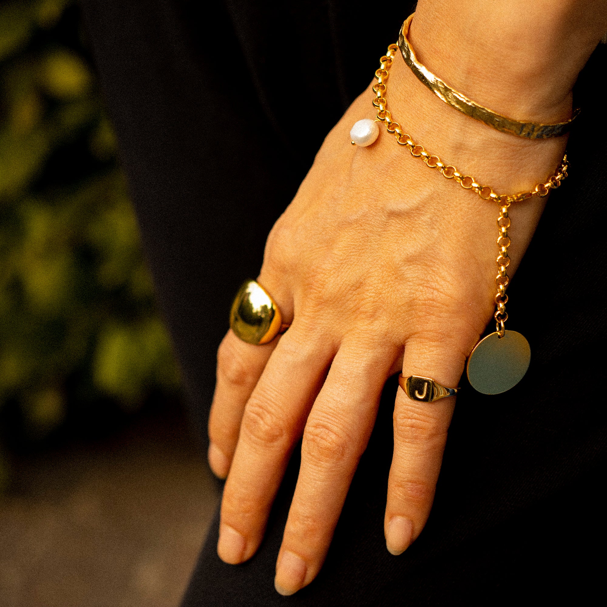 Fabriqués à partir de matériaux de haute qualité, nos bijoux sont résistants à l'eau et ne doivent pas ternir avec le temps. N'exposez pas les bijoux à la sueur, à l'eau, aux parfums, à l'alcool ou à d'autres substances pour vous assurer que le placage d'or n'est pas endommagé. Parce que nos bijoux sont plaqués d'or véritable, ils s'oxyderont également avec le temps. Nous recommandons de nettoyer tous les bijoux avec un tampon au bicarbonate tous les 6 mois pour un maximum de brillance. Avec le traitement et les soins appropriés, vos petits trésors peuvent rester beaux pendant longtemps et vos bijoux auront toujours l'air neufs.