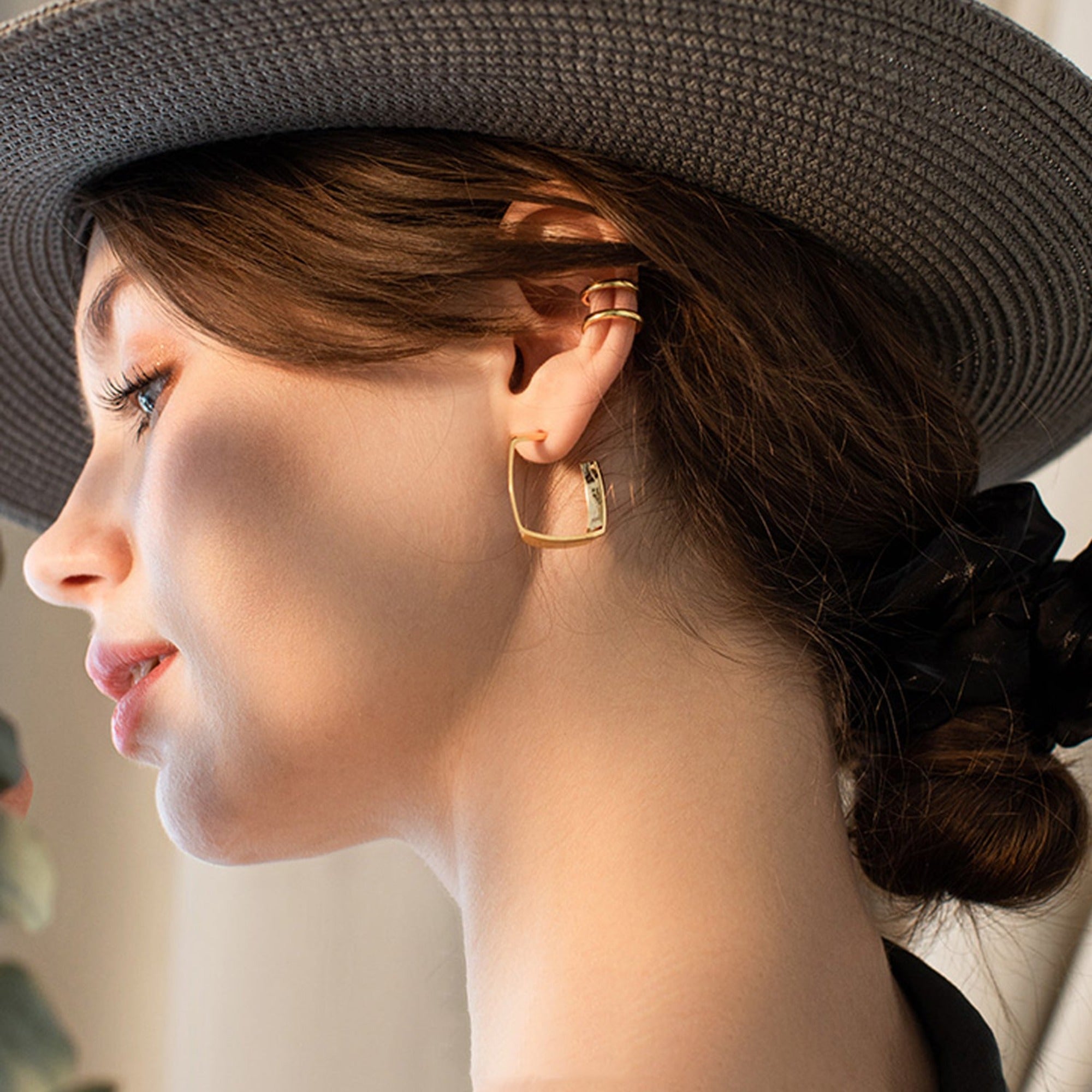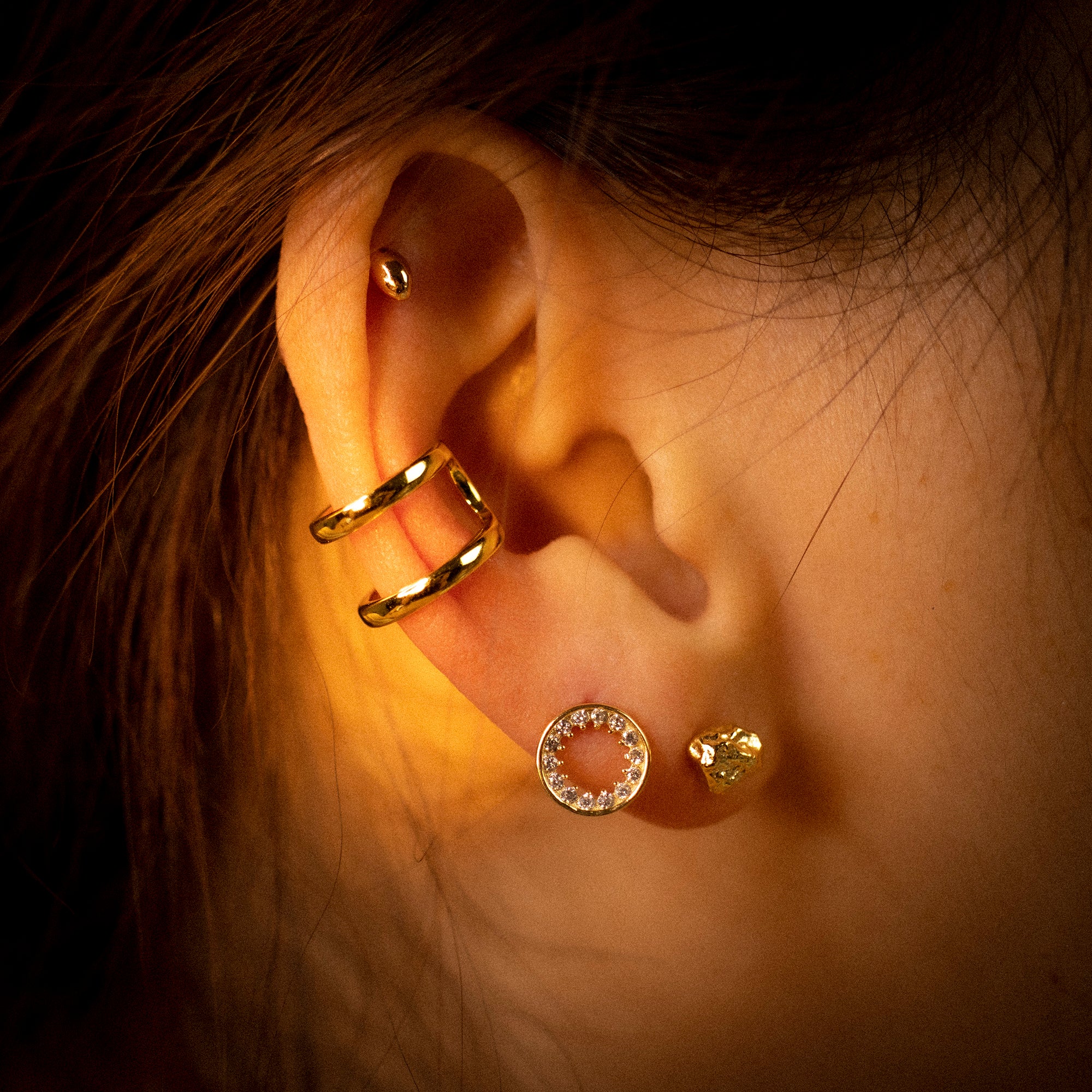 Ces boucles d'oreilles manchette en plaqué or S925 arborent un design brillant à double rangée, à la fois minimaliste et tendance. Confortables et d'une esthétique épurée, elles s'accordent avec toutes les tenues.