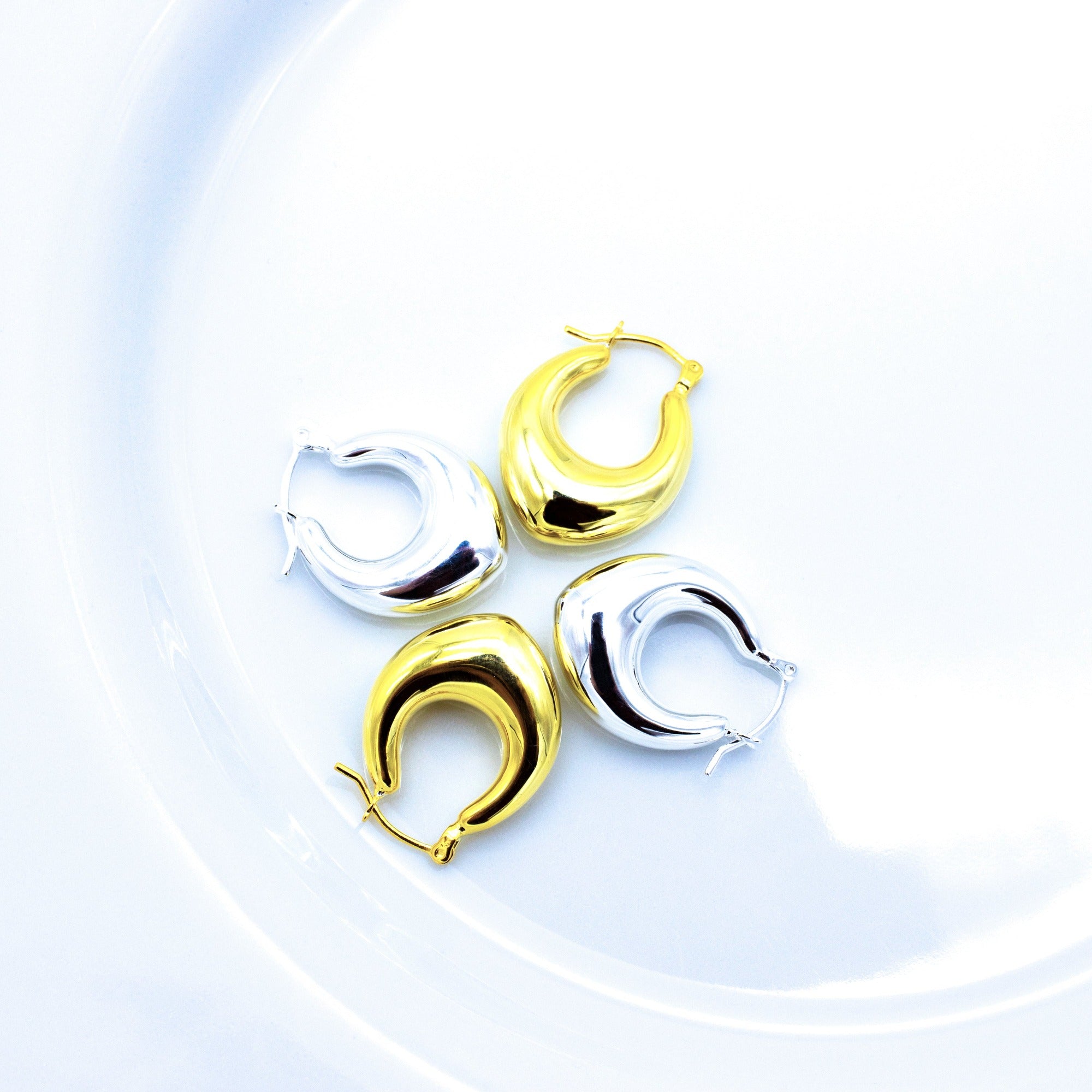 Boucles d'oreilles créoles dorées KOKODA, épurées et modernes