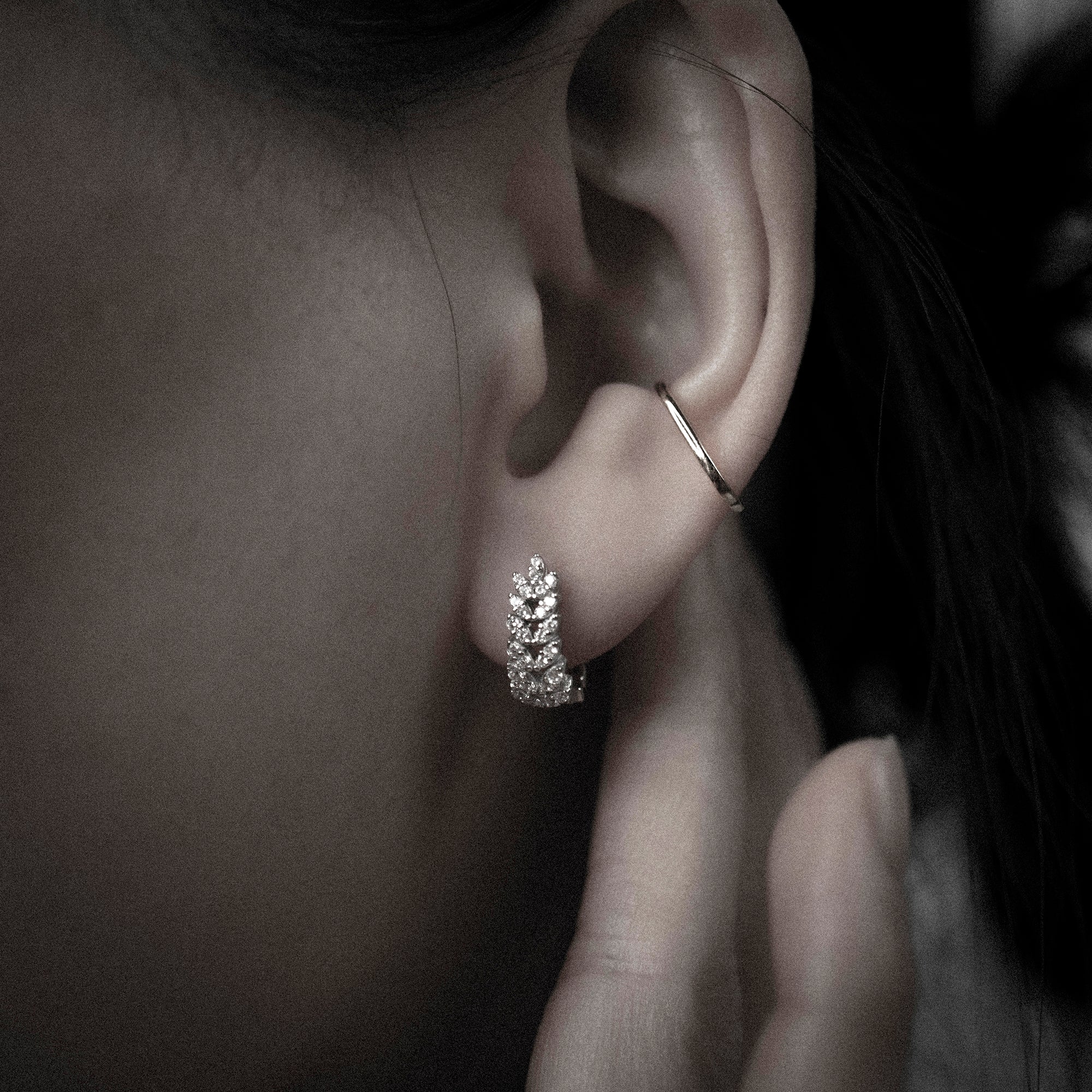 Boucles d'oreilles créoles branche d'olivier NEVEAH en argent, élégance rayonnante