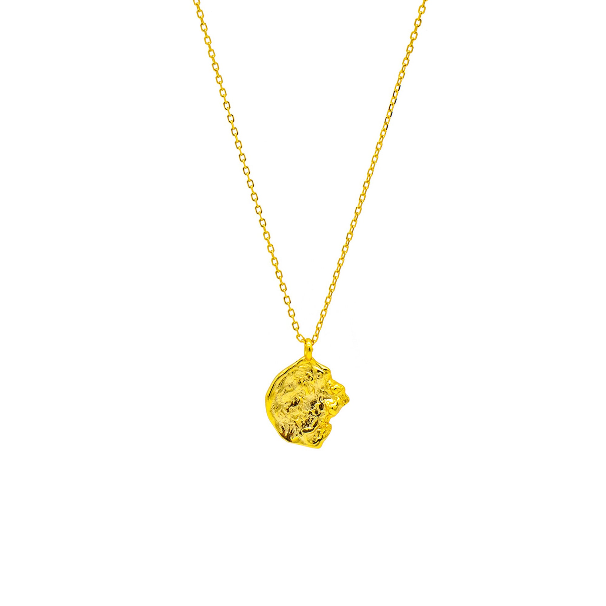 Ce collier tendance allie histoire et modernité grâce à son pendentif en forme de pièce de monnaie évoquant les symboles antiques. Confectionné en argent sterling 925 et rehaussé d'or 18 carats, il affirme avec style le charme vintage de tous ceux qui l'apprécient.
