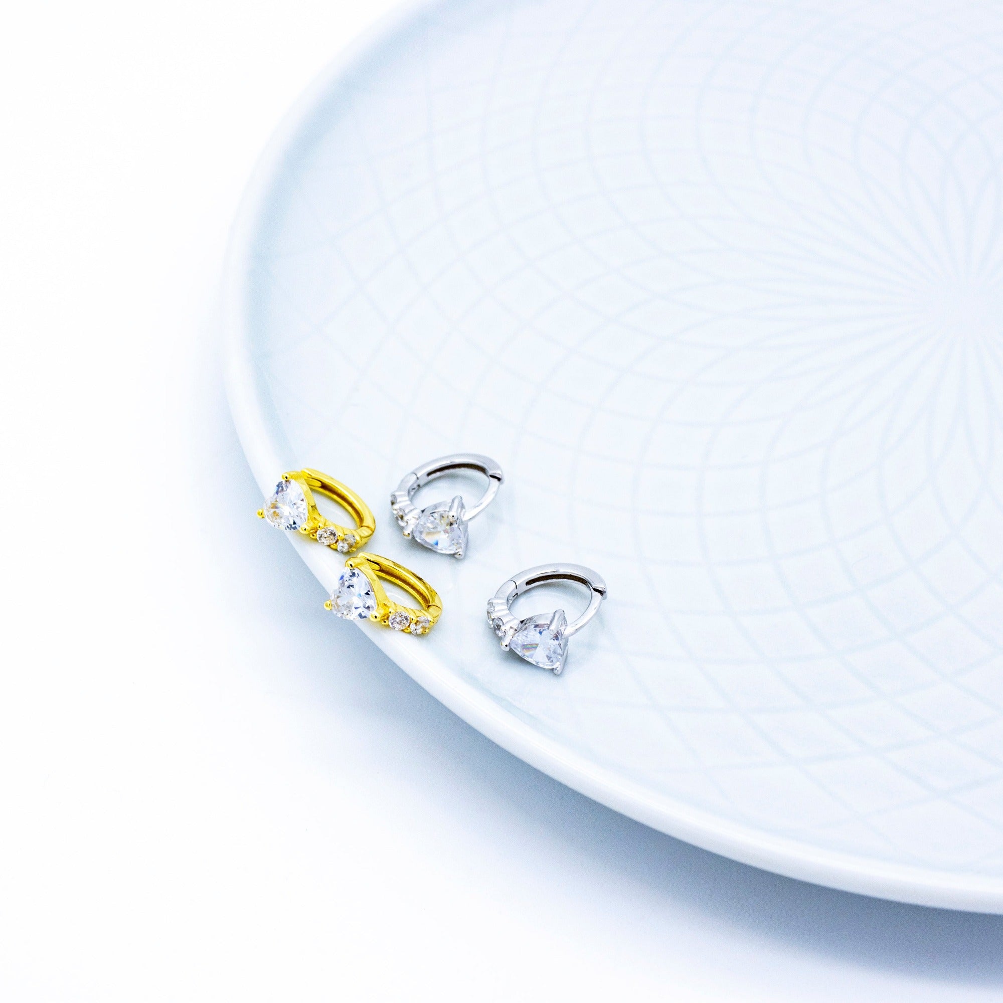 Ces boucles d'oreilles minimalistes sont une pièce forte qui ne passe pas inaperçue. Ces boucles d'oreilles créoles classiques présentent un design épuré et sont ornées de pierres de zircon facettées et étincelantes. La délicate pierre en forme de cœur apporte une touche d'élégance discrète à cet accessoire.