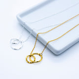 Le collier en argent sterling 925 est orné du double anneau français pour l'infini et l'amour sans fin