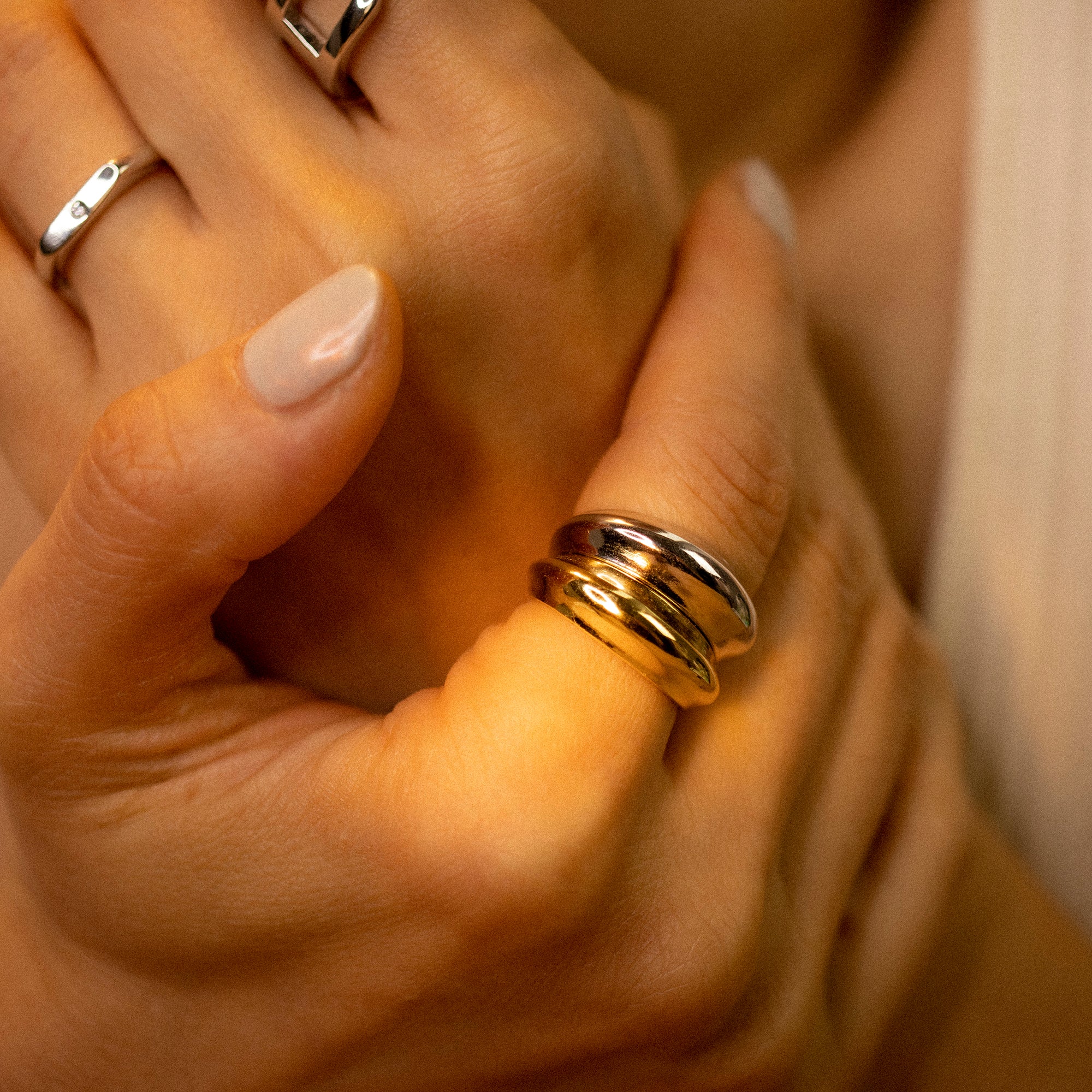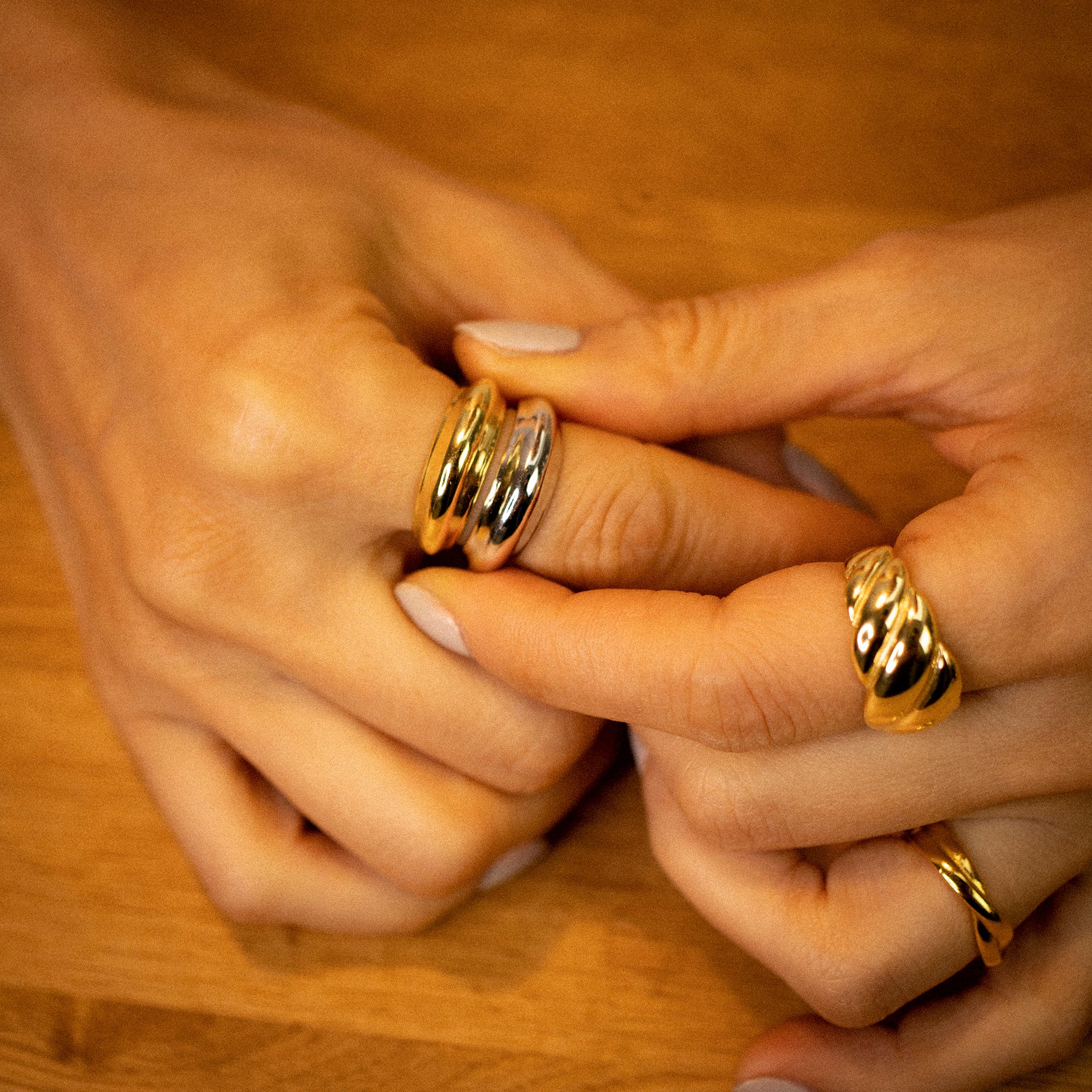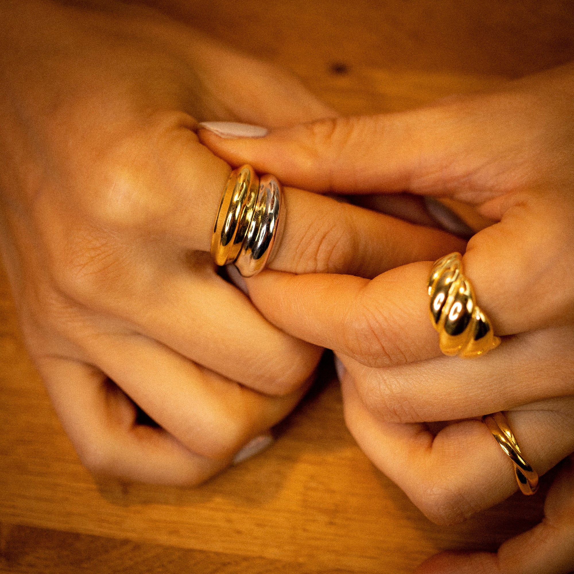 La bague à bande ondulée entoure le doigt avec sa forme réduite mais élégante et attire le regard. Comme l'anneau n'est pas soudé, il peut être légèrement ajusté au doigt concerné. Grâce à sa forme simple, le bijou peut être porté seul ou associé à d'autres bijoux.