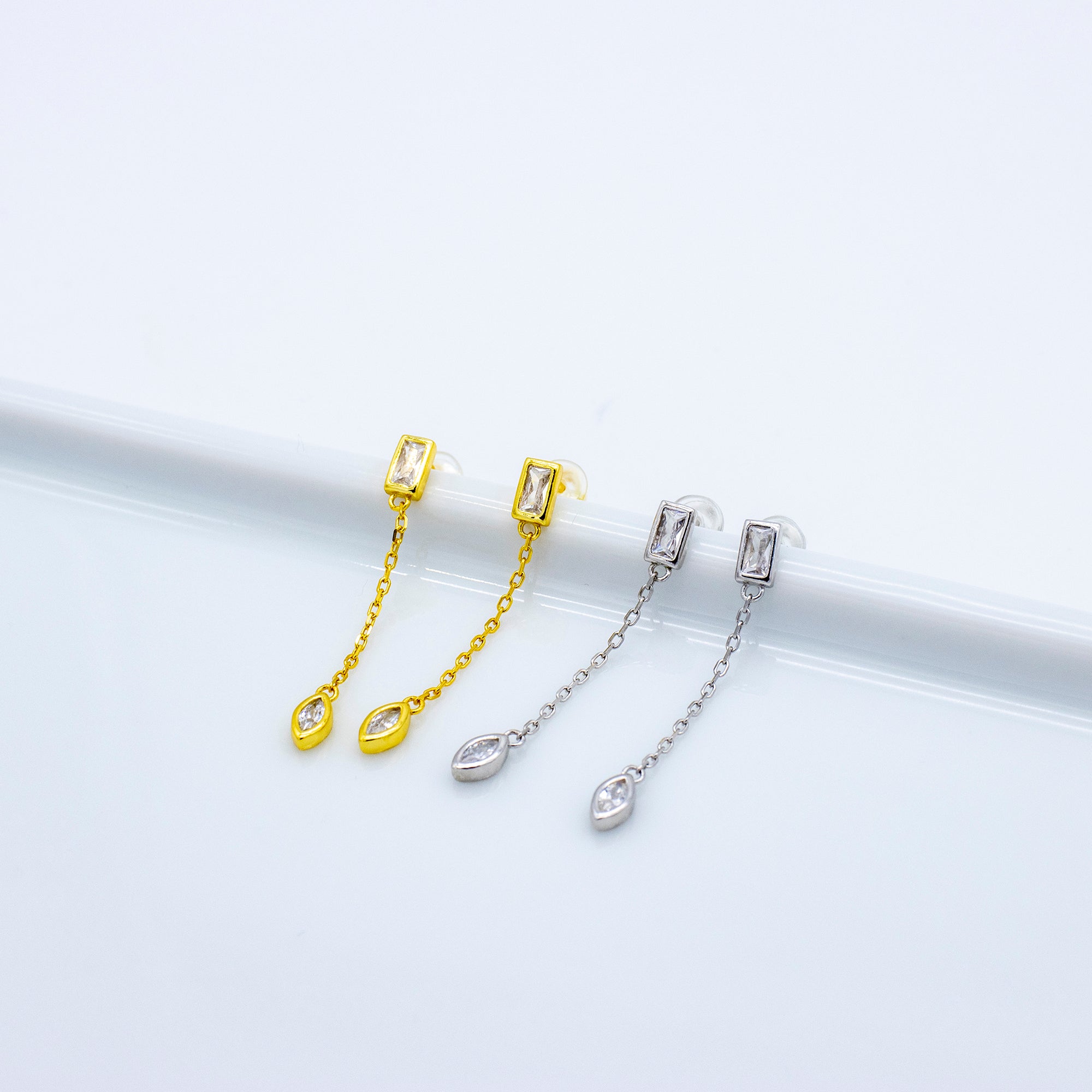 Boucles d'oreilles clous WINDNY en argent avec chaîne & zircons blancs