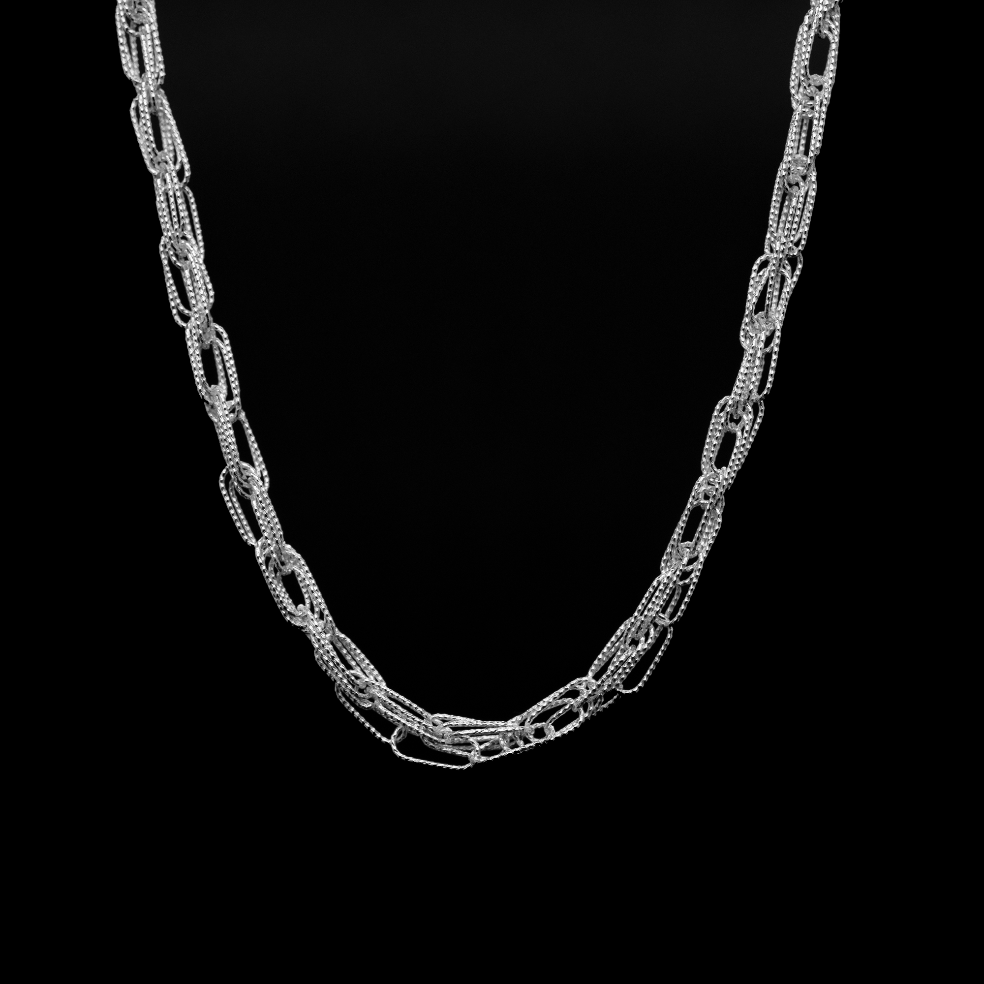 Diese stilvolle Halskette und Armkette bestehen aus fein geschliffenen und polierten, glänzenden Splittern. Jede Seite des Schmucks ist einzigartig und reflektiert das Licht, um ein funkelndes Erscheinungsbild zu kreieren. Tragen Sie es als Einzelstück oder übereinander mit anderen für einen modernen Look. Absolut It-Piece!