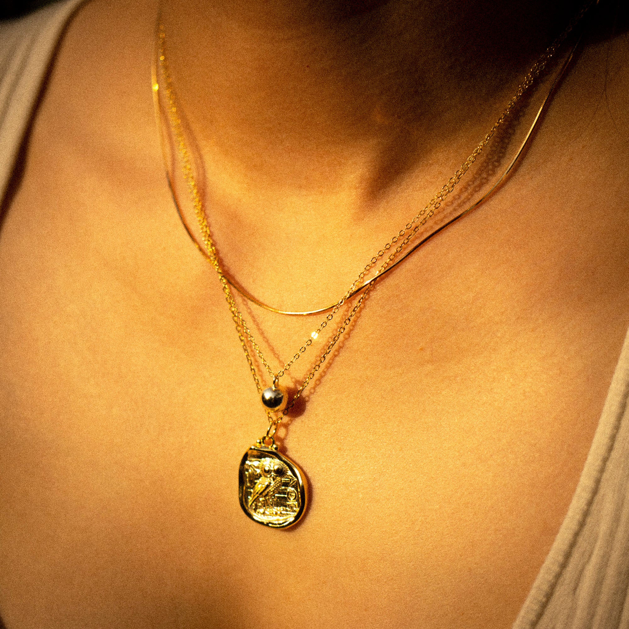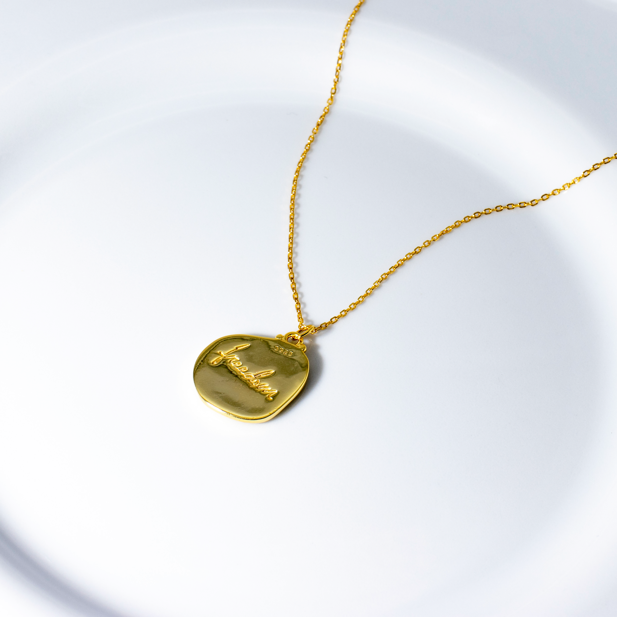 Für abenteuerliche Fans ist diese goldene Halskette mit Eule-Anhänger aus 925er Sterlingsilber das perfekte Stück. Der Anhänger ist in einer Wachssiegel-Form und mit einem Eulenmuster verziert, während die andere Seite eine Gravur mit dem Wort 'freedom' trägt. Jedes Detail ist ein Symbol für Weisheit und Unabhängigkeit.