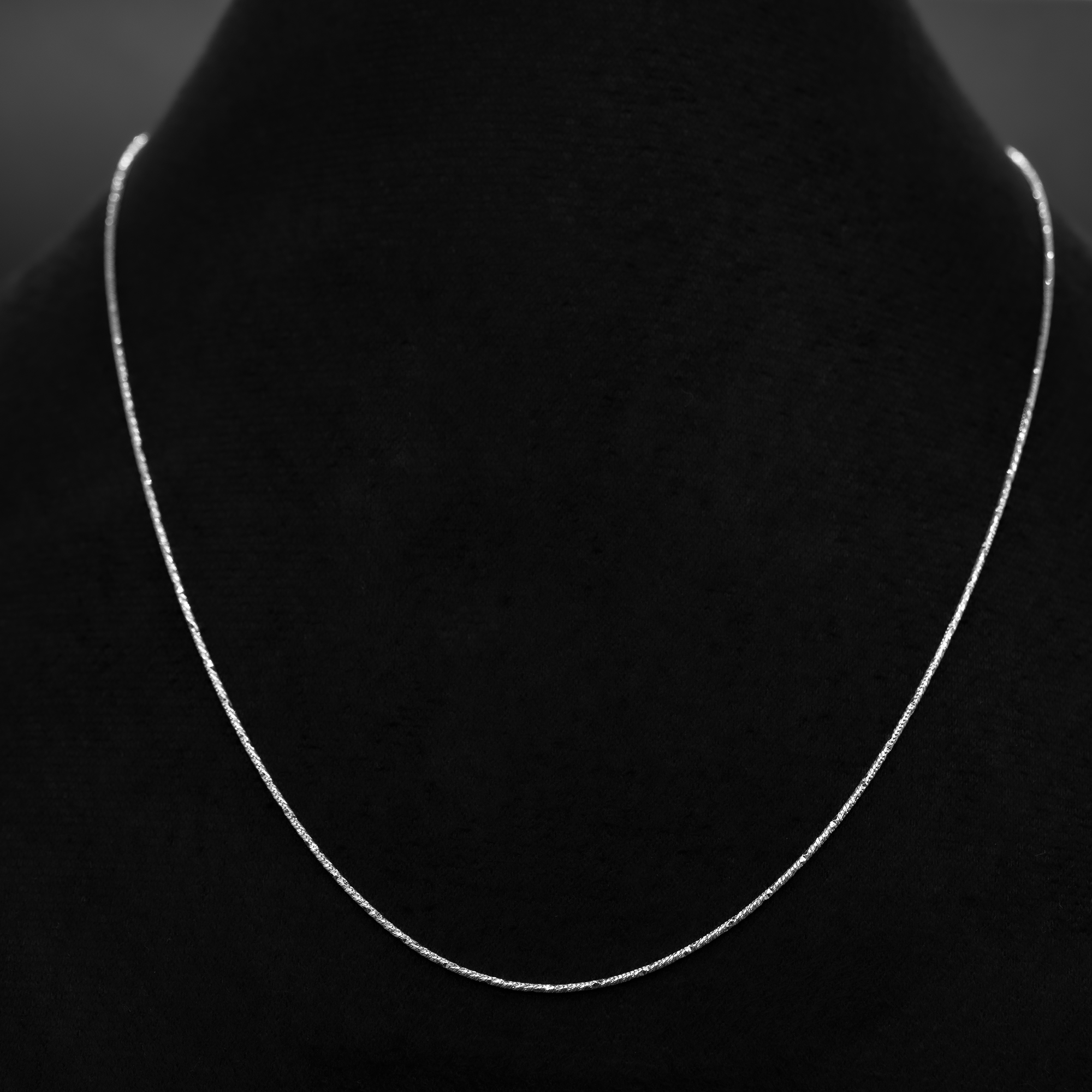 Diese filigrane Damenhalskette aus reinem Silber besticht durch ihr schlichtes und dennoch elegantes Design. Die feine, gleichmäßig strukturierte Kette funkelt dezent und verleiht jedem Outfit einen Hauch von Raffinesse. Ihre zarte Erscheinung macht sie ideal für den täglichen Gebrauch, eignet sich jedoch ebenso für besondere Anlässe. Die glatte Oberfläche reflektiert das Licht auf subtile Weise, was für einen sanften, aber wirkungsvollen Glanz sorgt. Dieses vielseitige Schmuckstück ist sowohl solo als auch in Kombination mit Anhängern ein stilvoller Begleiter, der zum Kaufen einlädt.