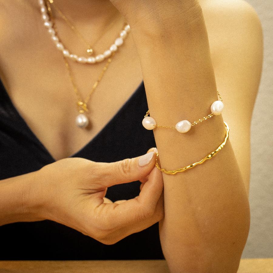 AUDREY Dünne Armspange mit Wellenstruktur in Gold