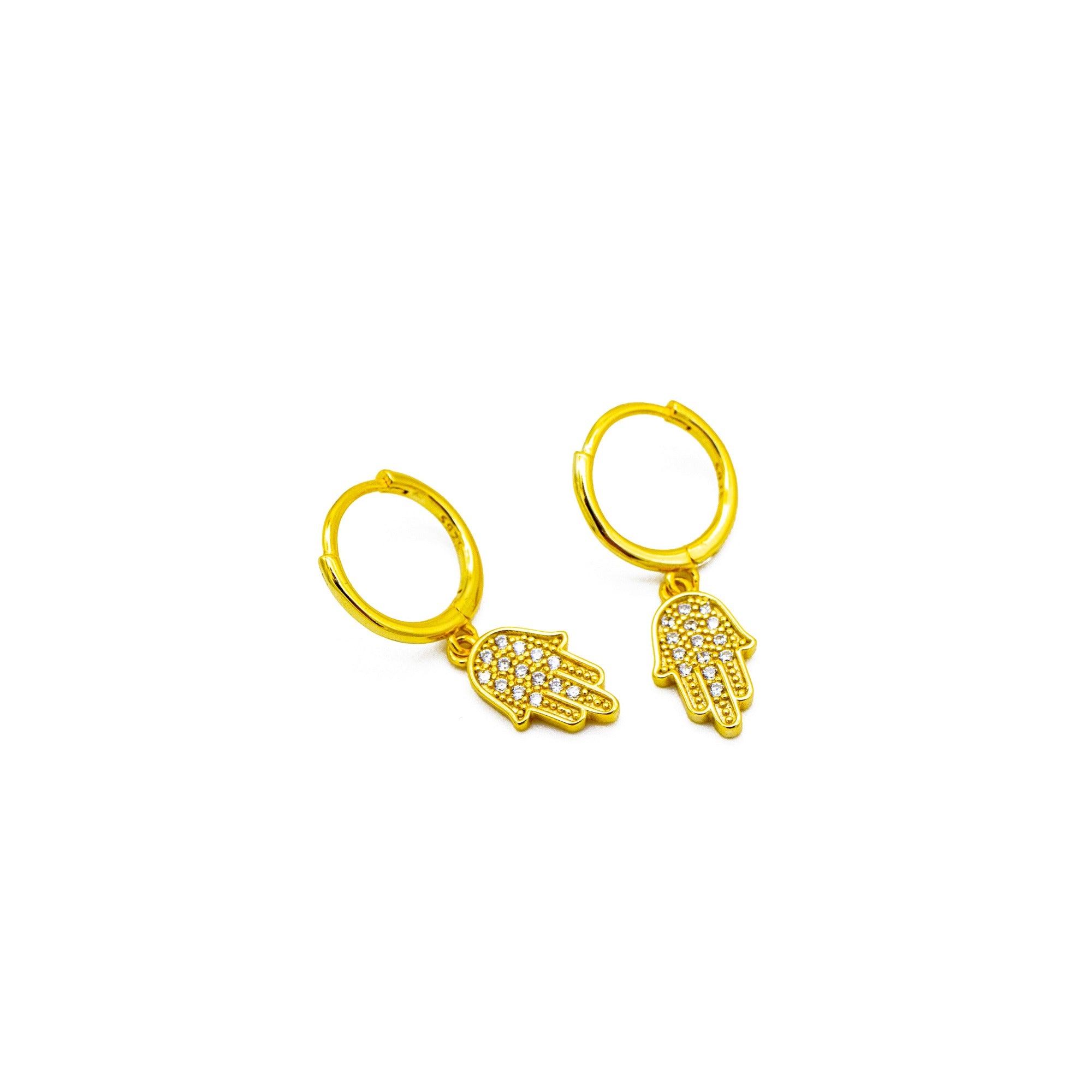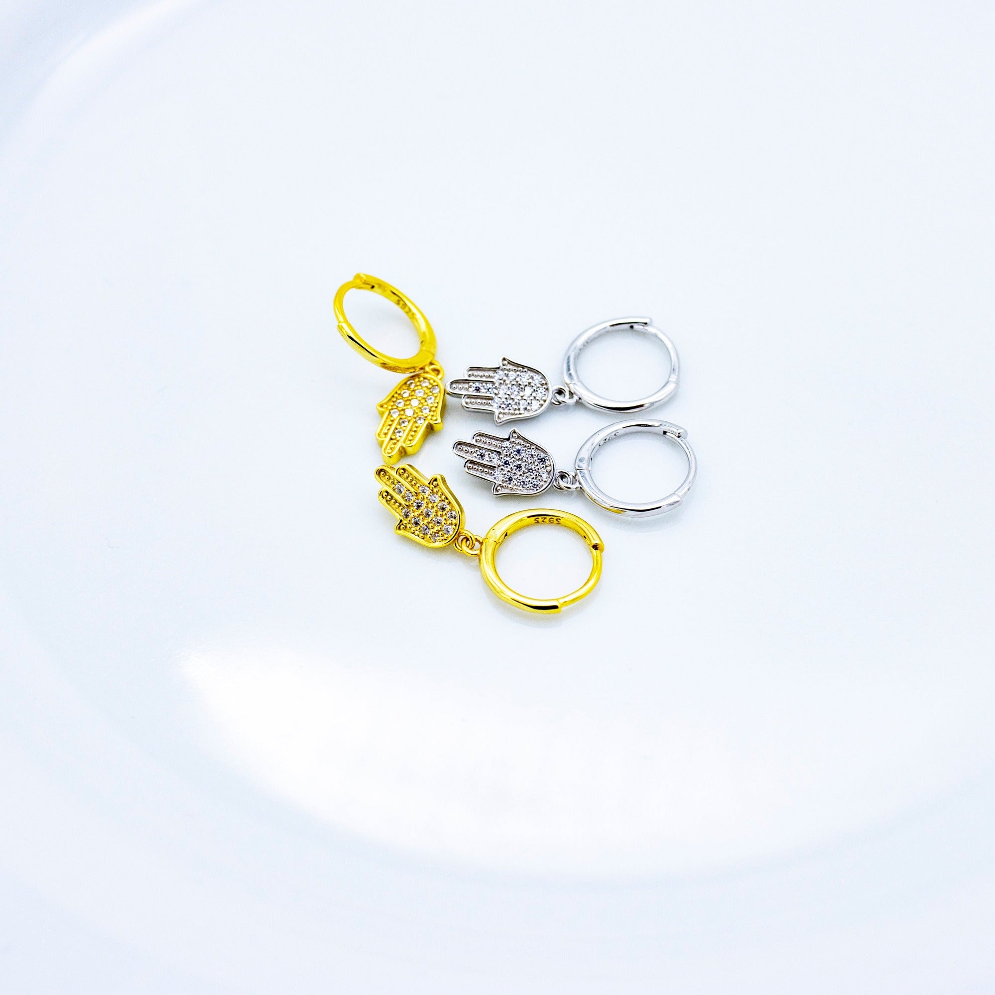 Die Ohrringe lassen sich vielseitig kombinieren – ob zu modernen Ear-Party-Looks oder als symbolisches Detail im Alltag. Der Hand-Anhänger steht für Schutz und Kraft, während der Zirkonia für funkelnde Eleganz sorgt.