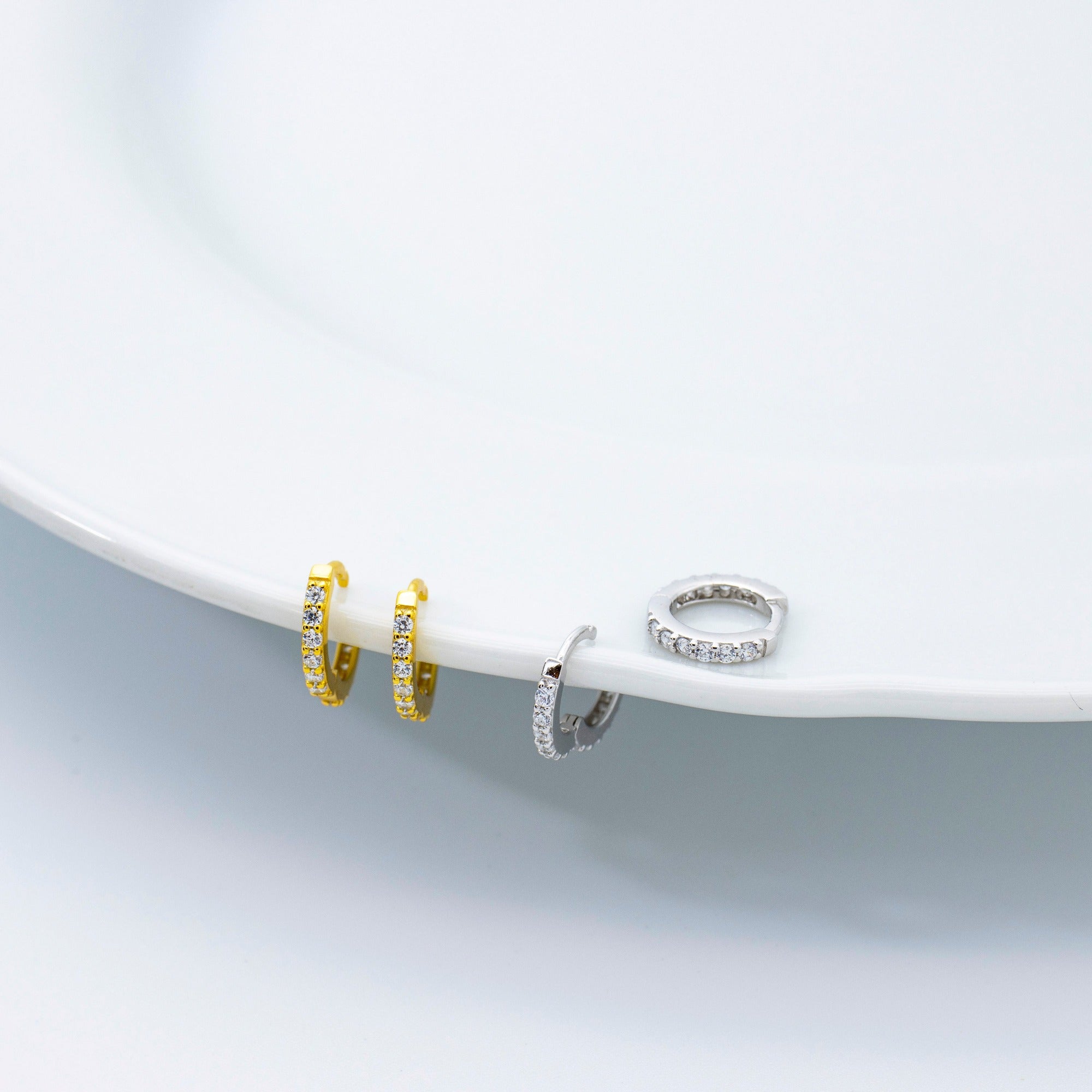 Kleine Schönheiten - Die zeitlose Form wird durch das hochwertige S925 harmonisch und edel abgerundet. Funkelnde Highlights sind die weißen Zirkonia, mit denen die Creolen voll besetzt sind. Verschlossen werden die bezaubernden Creolen mit Klappverschlüssen, die einen sicheren Halt gewährleisten. Schön und vielseitig kombinierbar!