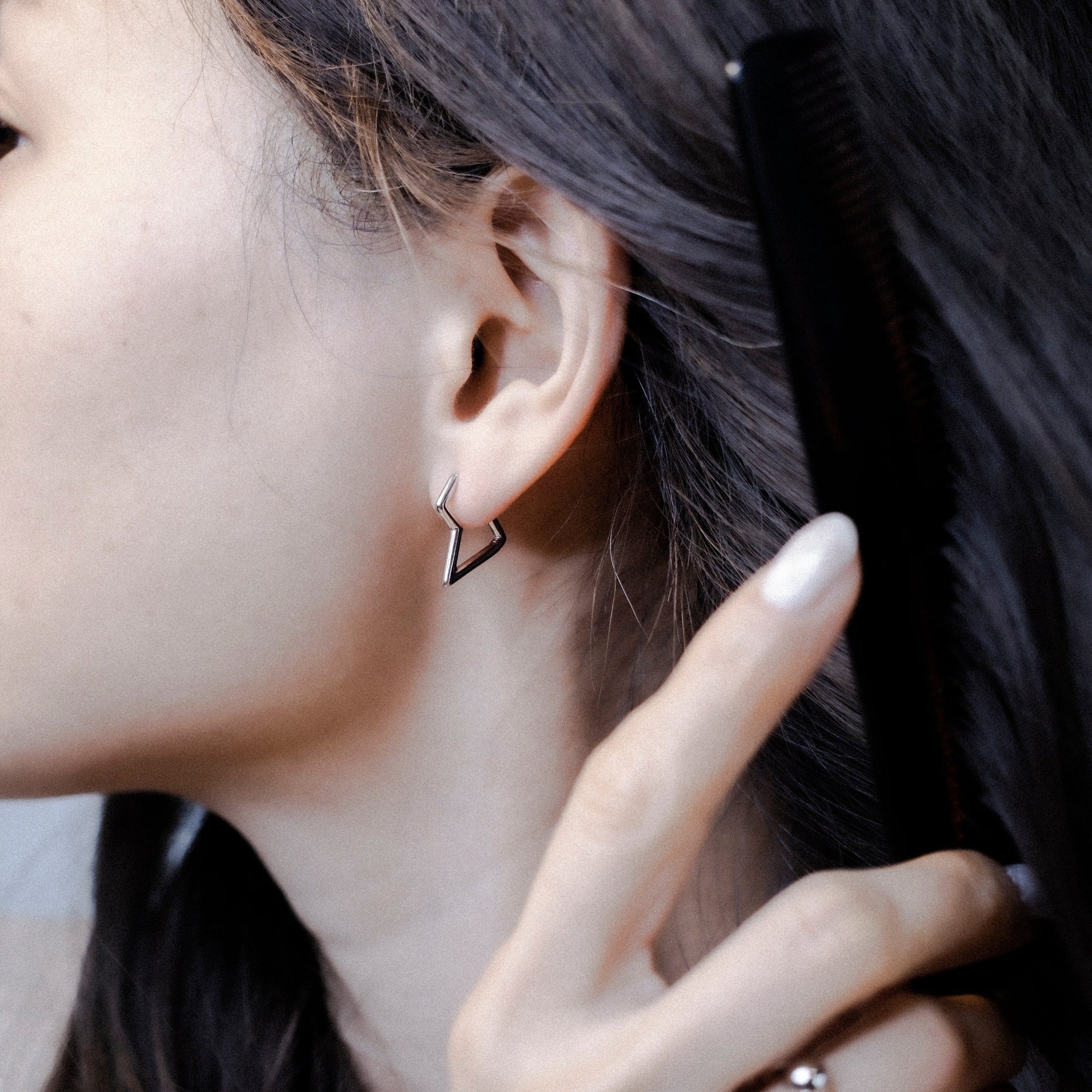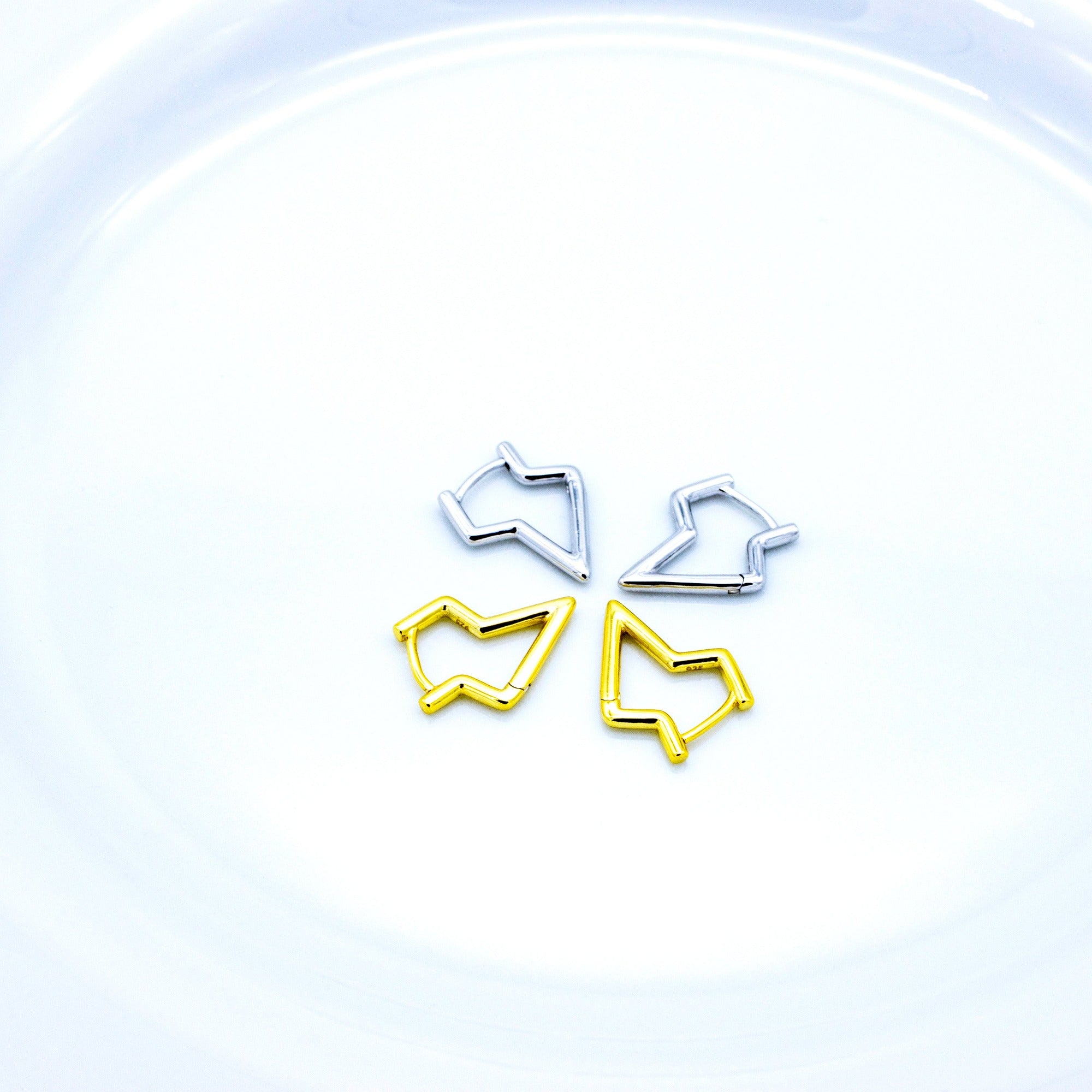 Die Silberohrringe aus Sterlingsilber überzeugen mit ihrer kraftvollen, dynamischen Linienstruktur. Dieses zickzackförmige Design verleiht jedem Look eine spirituelle Note. Sie sind das perfekte Accessoire, um ein Outfit stylisch abzurunden.