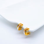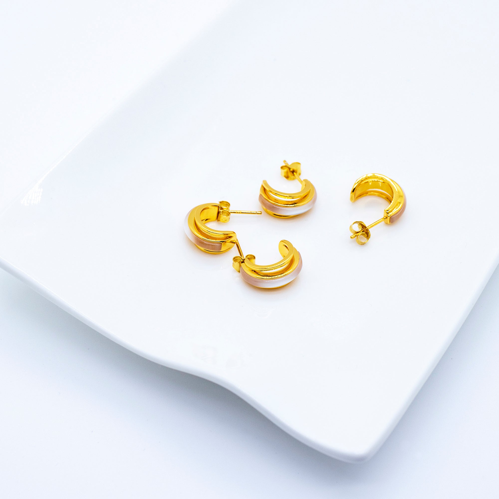 DORYSSA luftige Gold Ohrstecker mit Perlmutt in Halb-Creolen Optik