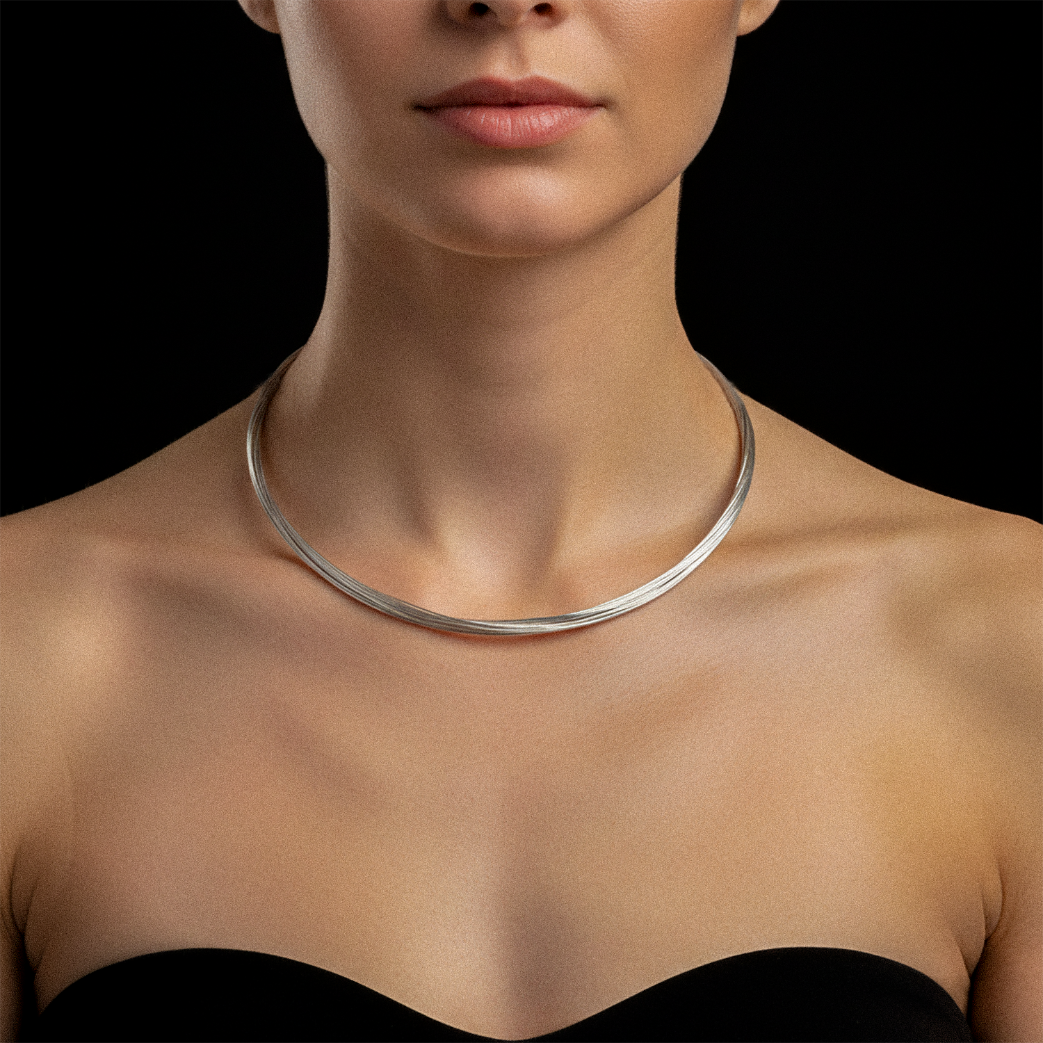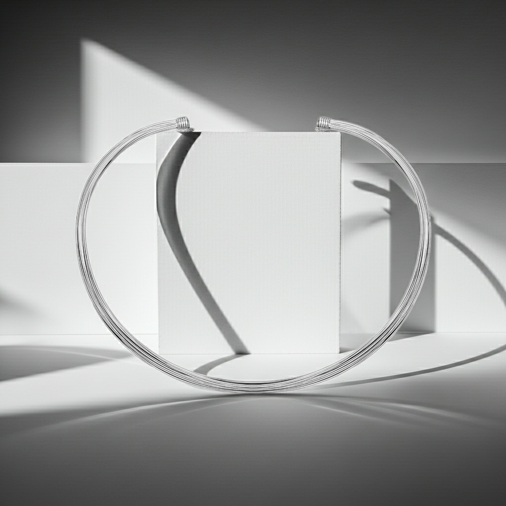 Dieser luxuriöse Drahtseil-Halsreif aus 925er Sterlingsilber verleiht deinem Outfit einen industriellen, doch eleganten Touch. Aus den mehreren dünnen Silber-Strängen besteht der Halsreif. Er ist ein garantierter Hingucker und ziehen alle Blicke auf sich. Perfekt für modebewusste Individualisten mit einem Sinn für kunstvolle Accessoires.