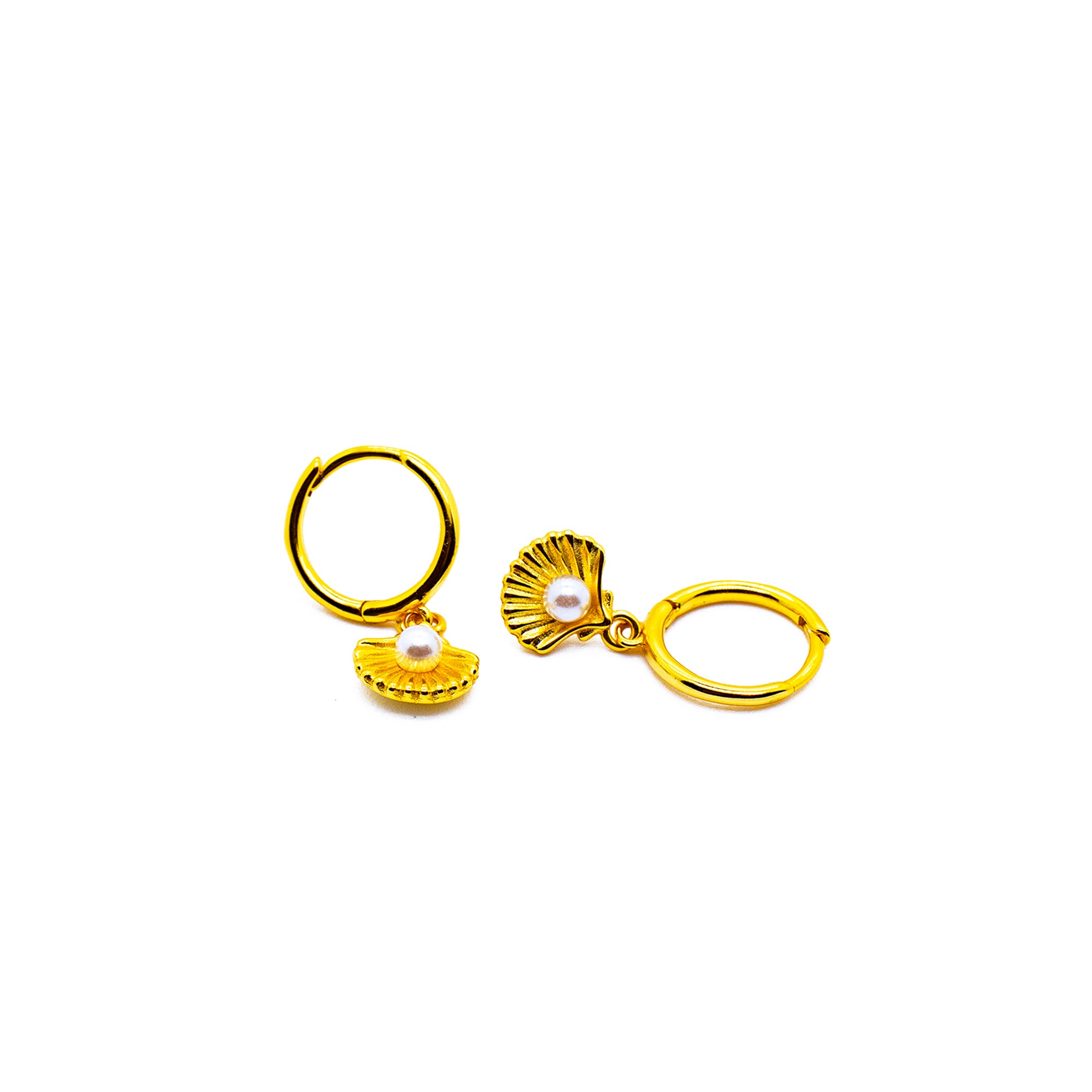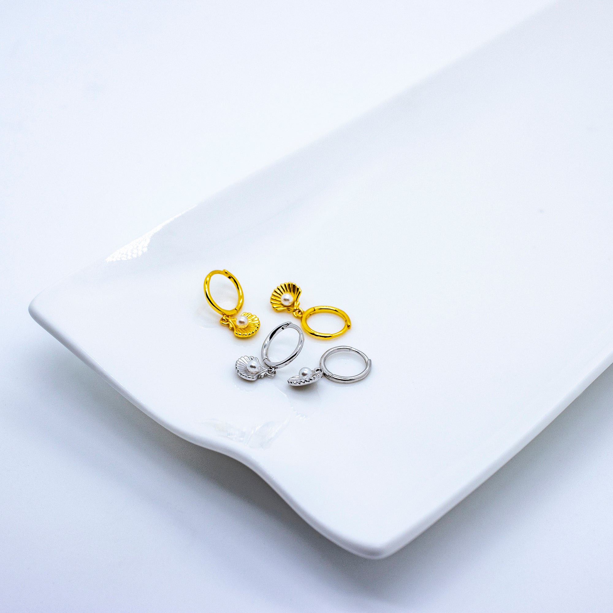 AYES 925 Silber Creolen Gold – Muschel Perlen Anhänger