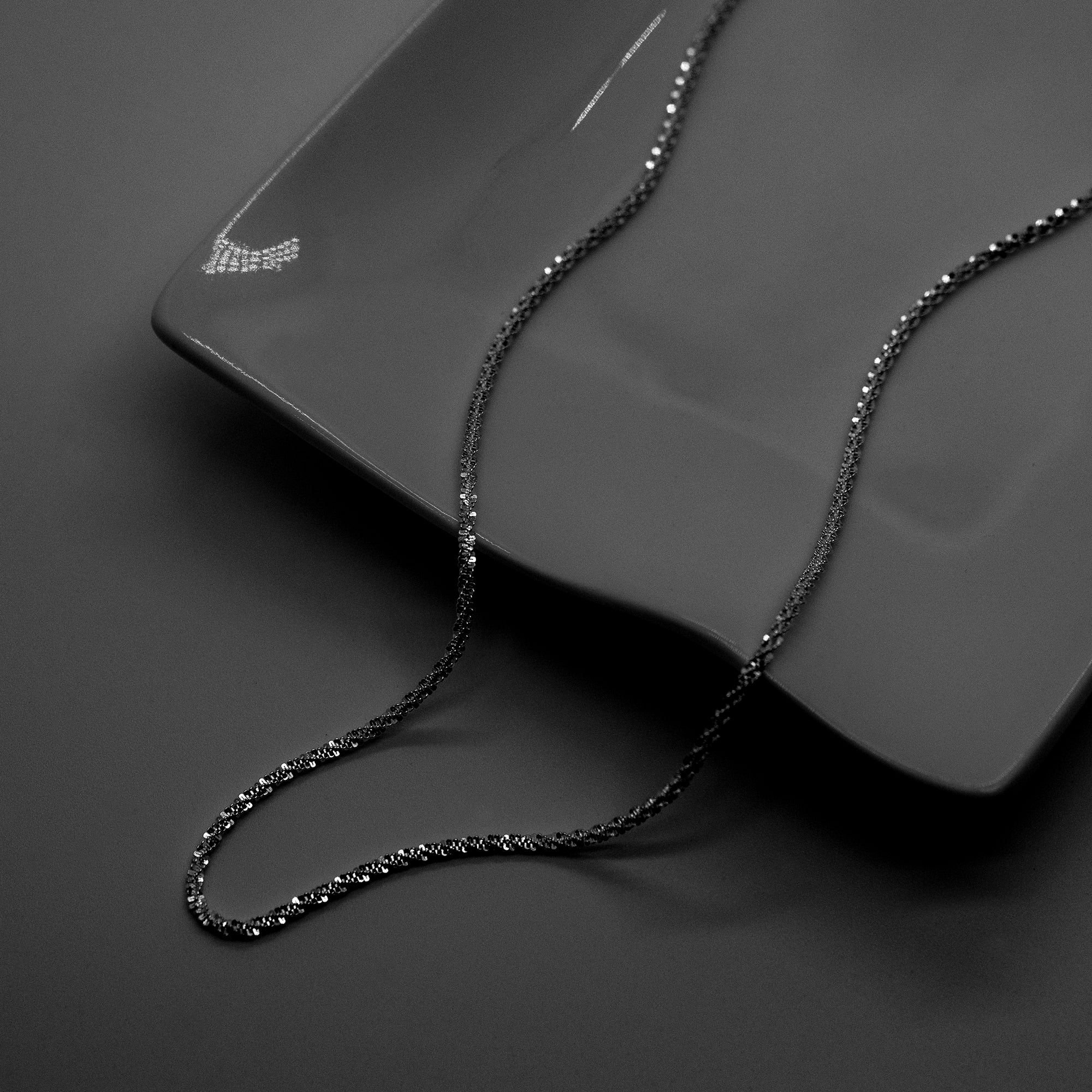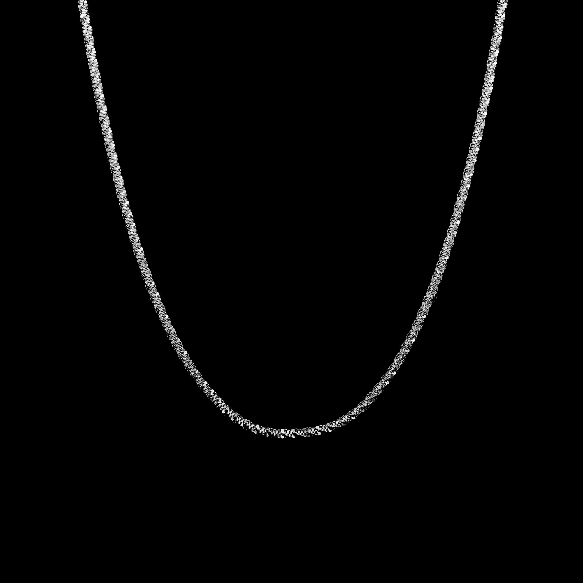 Diese feine Halskette aus recyceltem 925er Sterling Silber besticht durch ihr feines 3D-Fischgrätenmuster. Dieses elegante Design verleiht Deinem Look eine besondere Note und eignet sich perfekt für den Alltag oder besondere Anlässe.