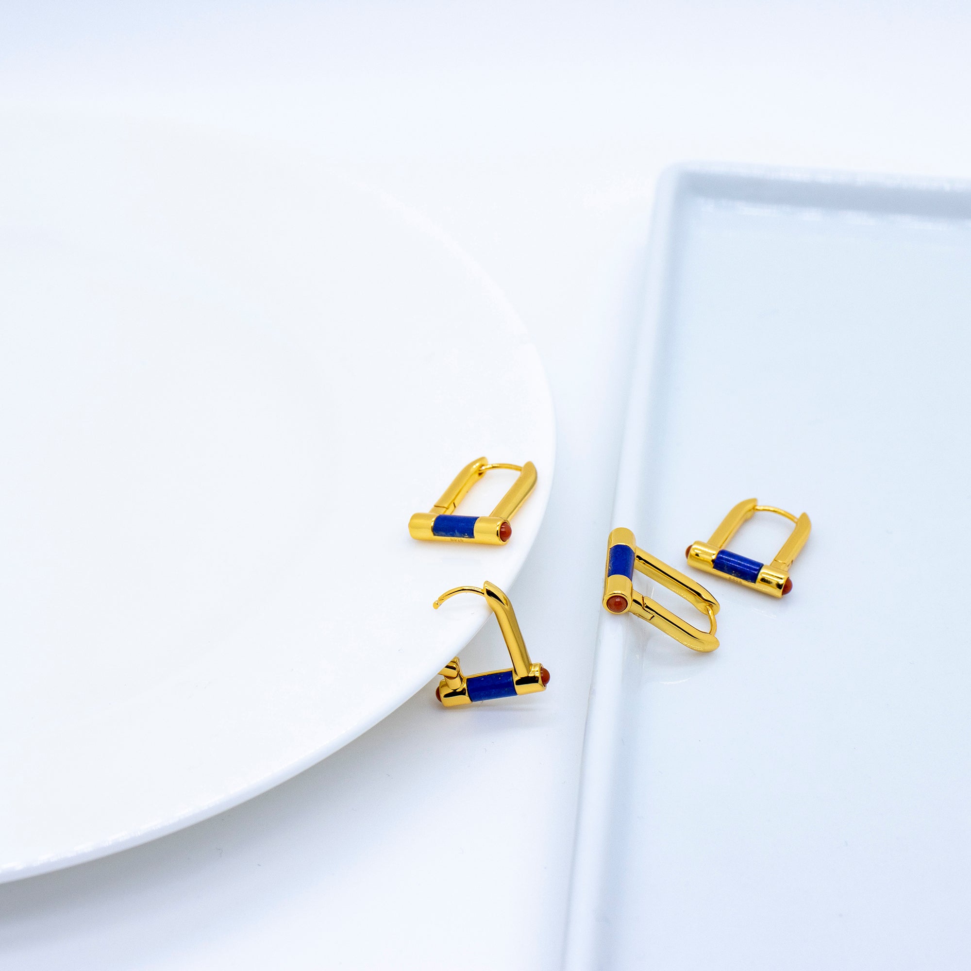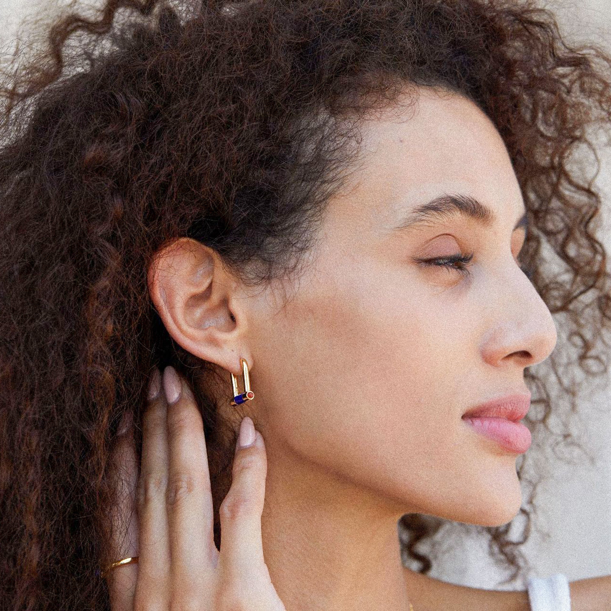 GEORGIA Bügelförmige Goldcreolen mit Lapislazuli & Onyx