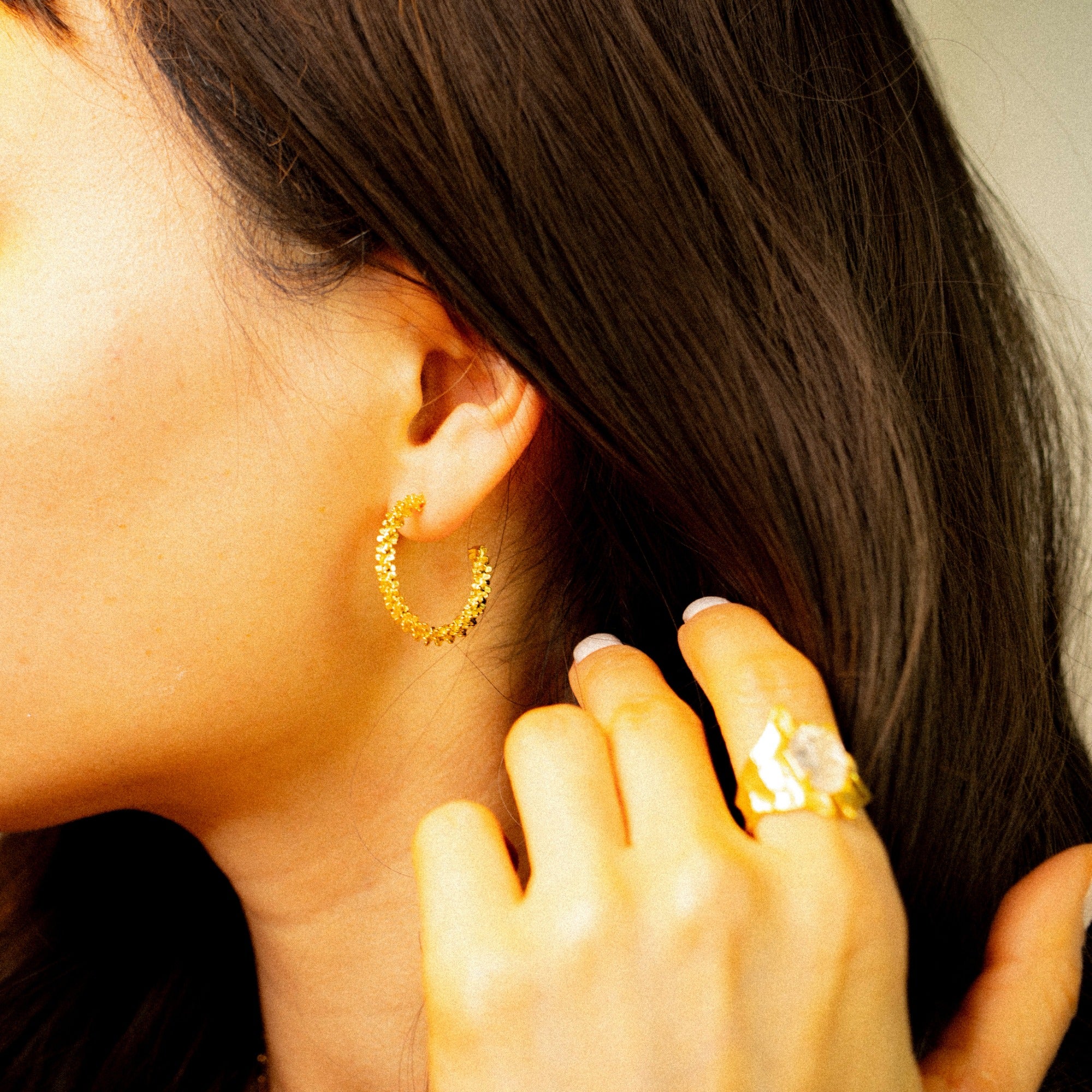 Dank ihrer plastischen Struktur wirken die Ohrstecker wie kleine Skulpturen. Sie passen perfekt zu eleganten Outfits, können aber auch als Highlight im Alltag getragen werden. Besonders schön lassen sie sich mit schlichten Ketten oder minimalistischen Ringen kombinieren, um den Look abzurunden.
