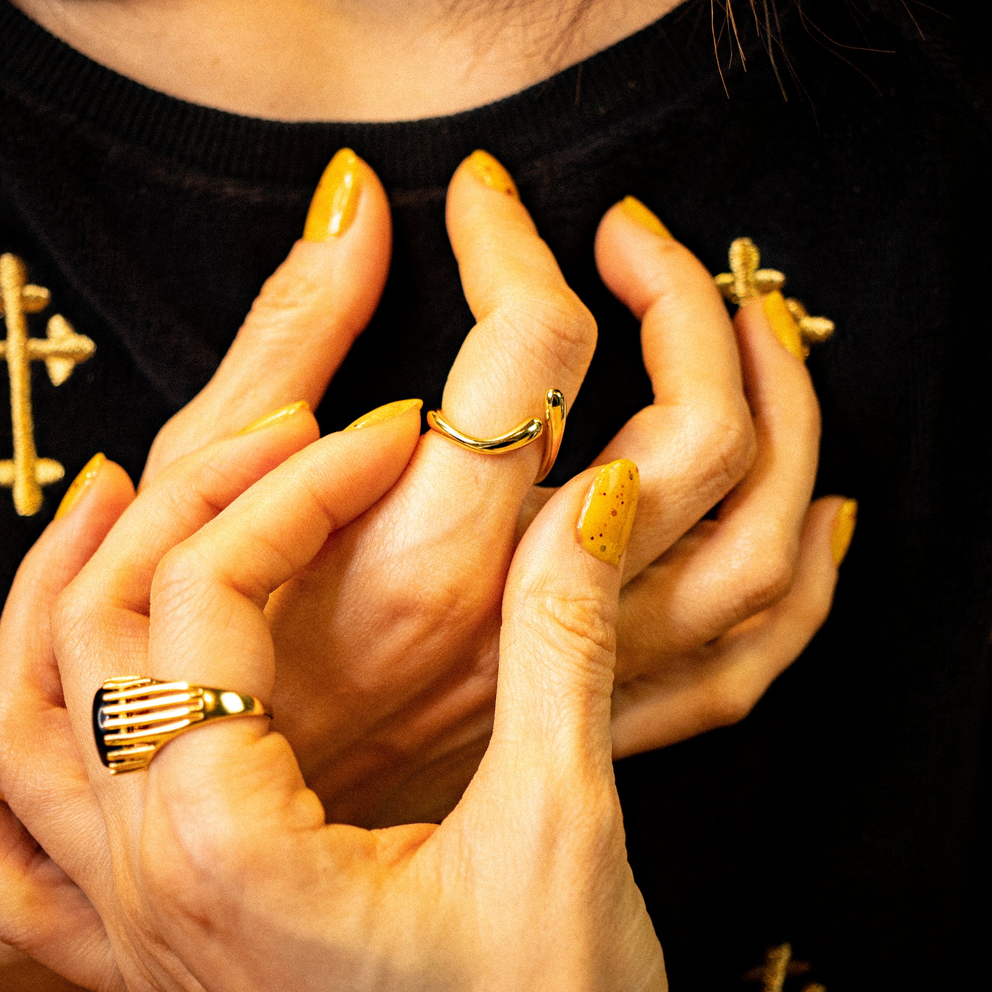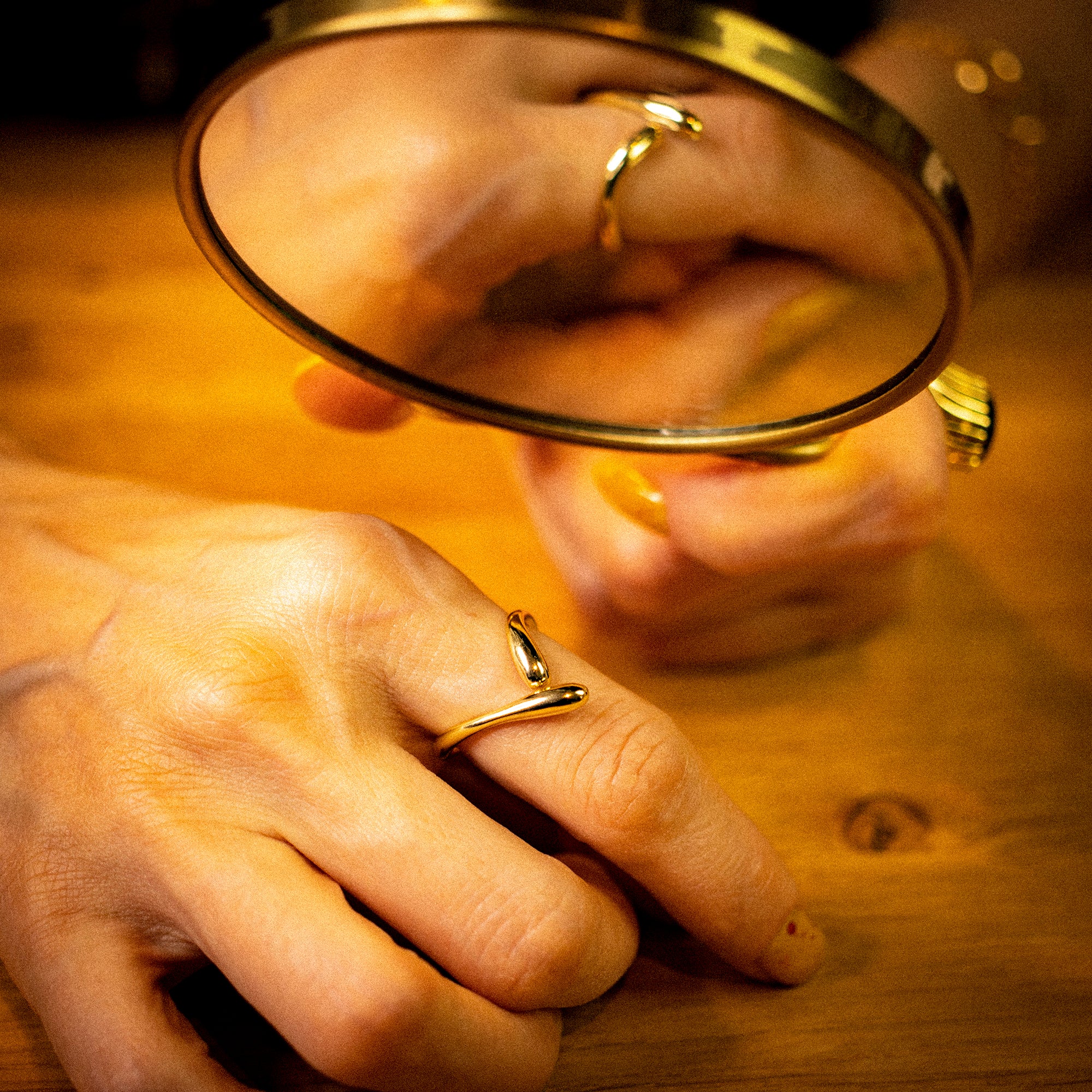 Dank seiner offenen Form ist der Josie Ring größenverstellbar und angenehm zu tragen. Solo getragen wirkt er dezent und modern, kombiniert mit weiteren Goldringen entfaltet er seinen ganzen Charme im angesagten Layering-Look.