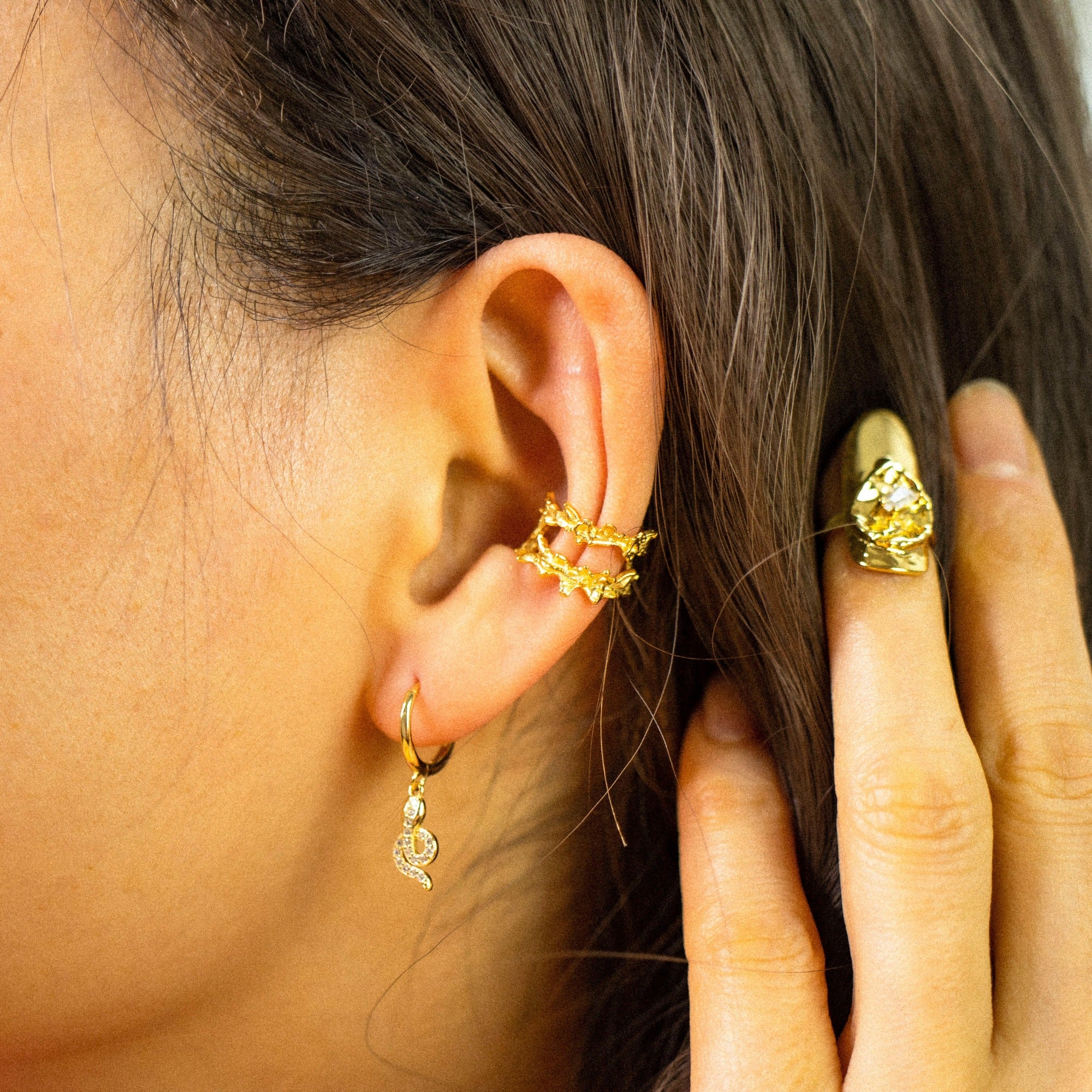 Ob solo als dezenter Eyecatcher oder im Layering mit Creolen und Ohrsteckern – der Ear Cuff passt perfekt zu angesagten Ear-Party-Looks. Sein reduziertes Design macht ihn zu einem Must-have für alle, die minimalistischen Schmuck lieben.