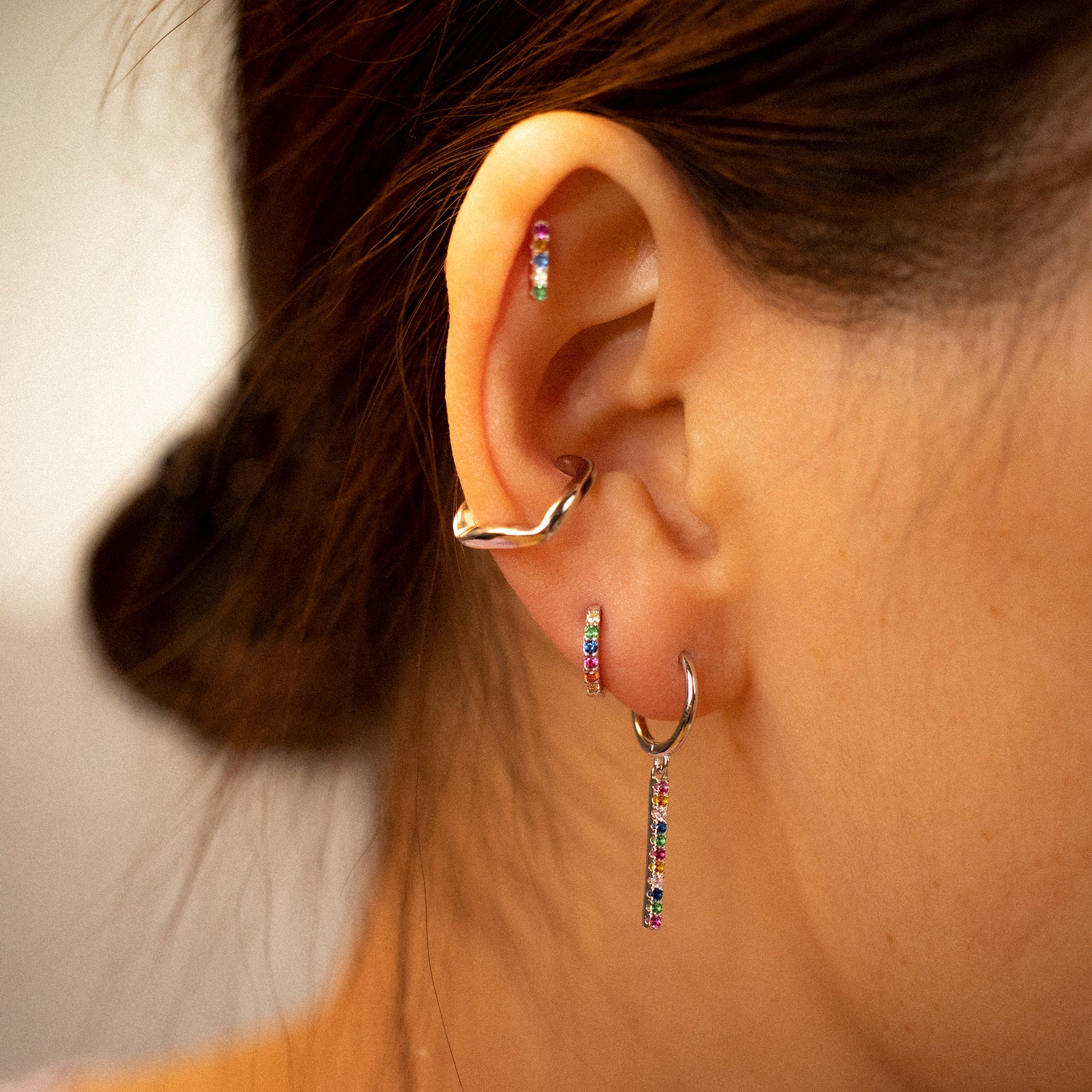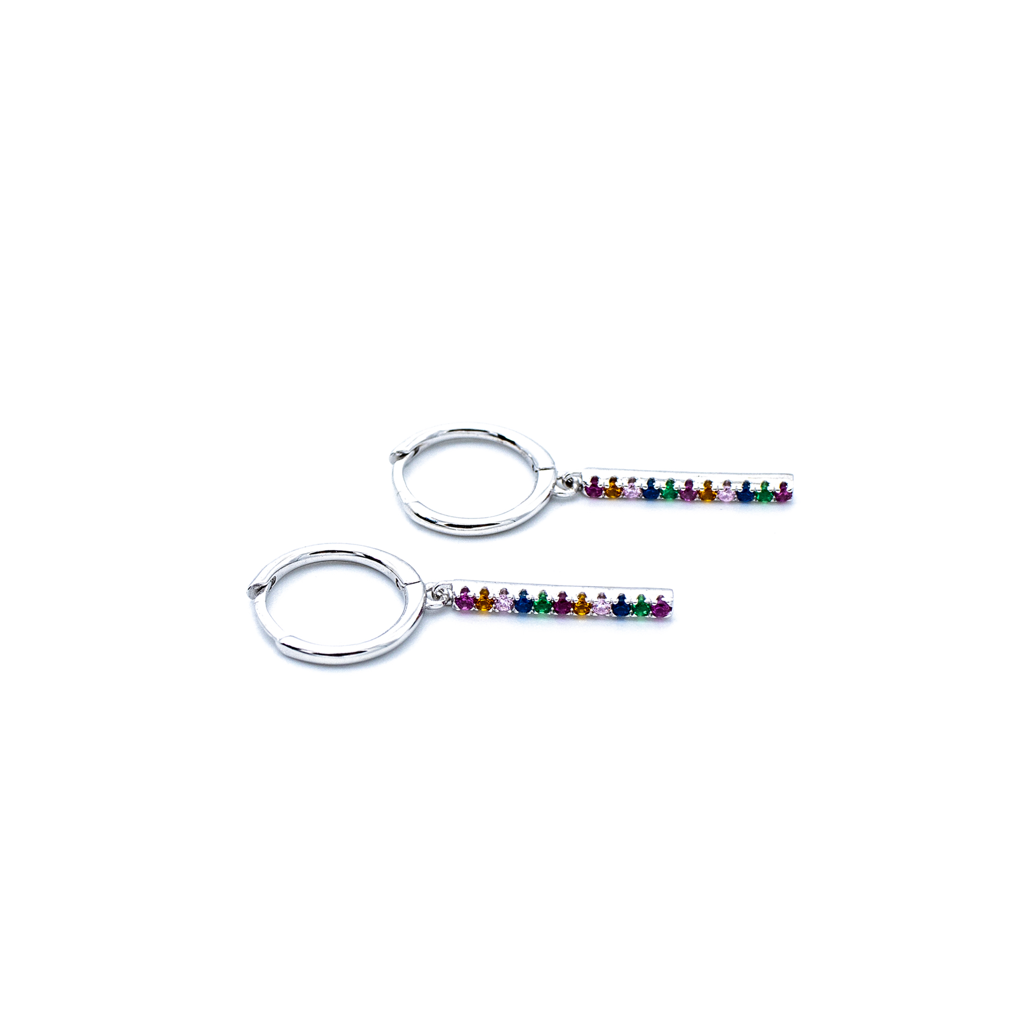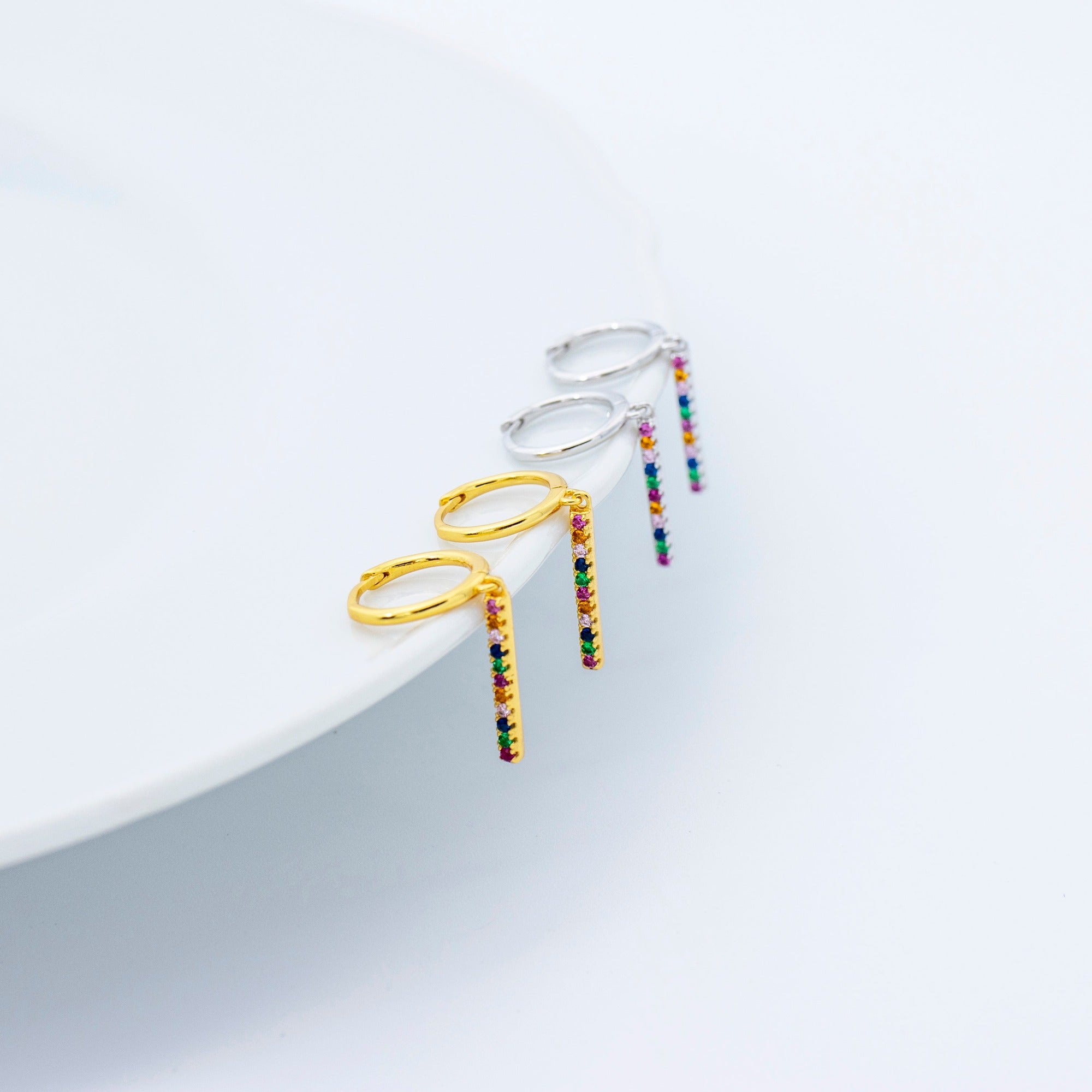 Diese dezenten Ohrringe sind ein bezauberndes Schmuckstück aus 925er Sterlingsilber, das durch einen länglichen glänzenden Anhänger in schillernden Regenbogenfarben zu einem einzigartigen, farbenfrohen Design wird. Perfekt als modisches Accessoire bei jedem luxuriösen Anlass.