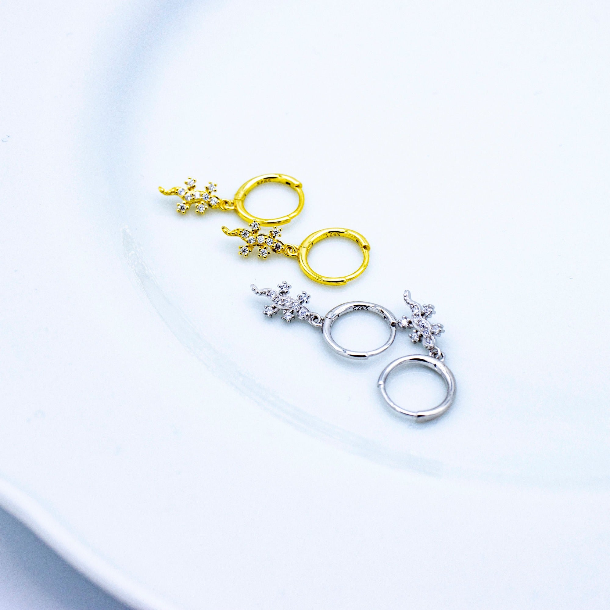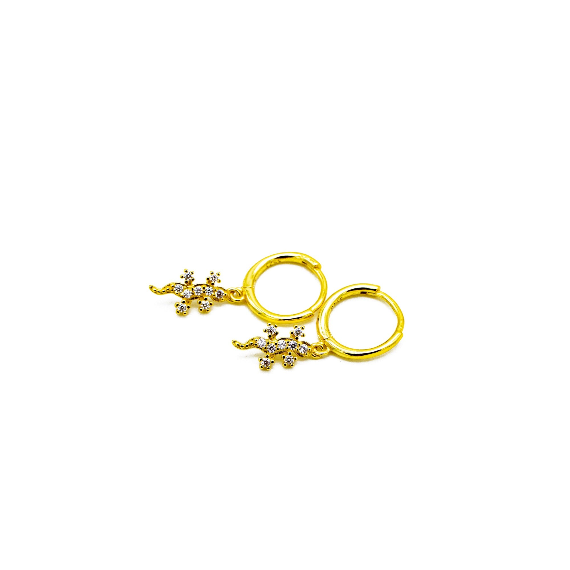 LONGBOH Gold Creolen | Gecko Ohrhänger mit Zirkonia & 925 Silber