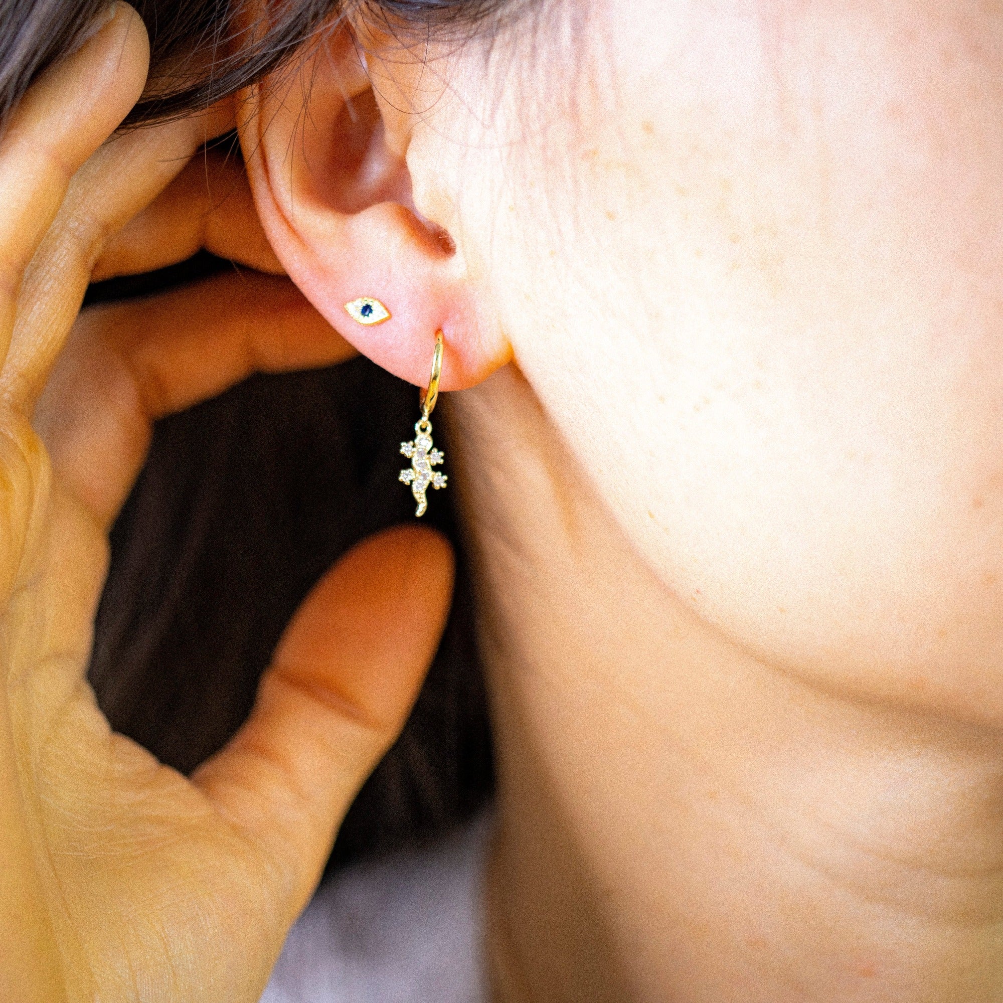 Diese Creolen mit Gecko Anhänger sind ein vielseitig kombinierbares Accessoire mit Wow-Effekt. Die symbolträchtigen Gecko-Ohrhänger mit funkelnden Steinen sind ein ganz besonderer Hingucker.