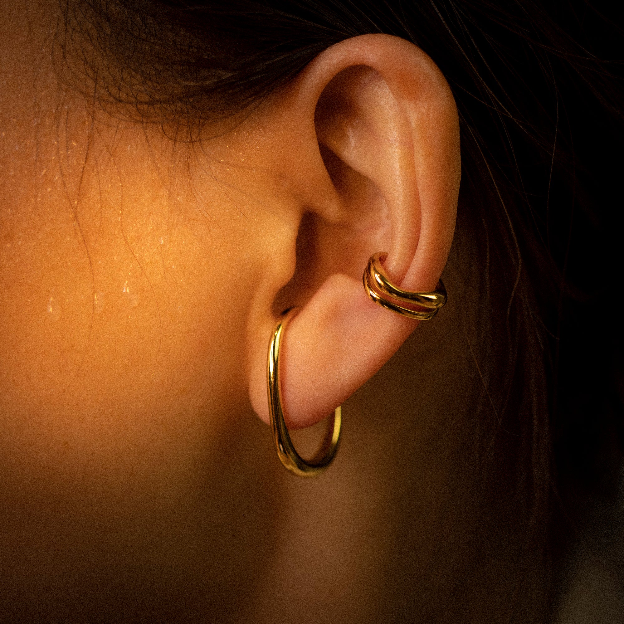 Die schlichte Form macht ihn zum perfekten Begleiter für jeden Tag. Ob einzeln getragen oder im Ear-Stacking mit Creolen und Ohrsteckern kombiniert – der cleane Earcuff rundet deinen Style stilvoll ab.