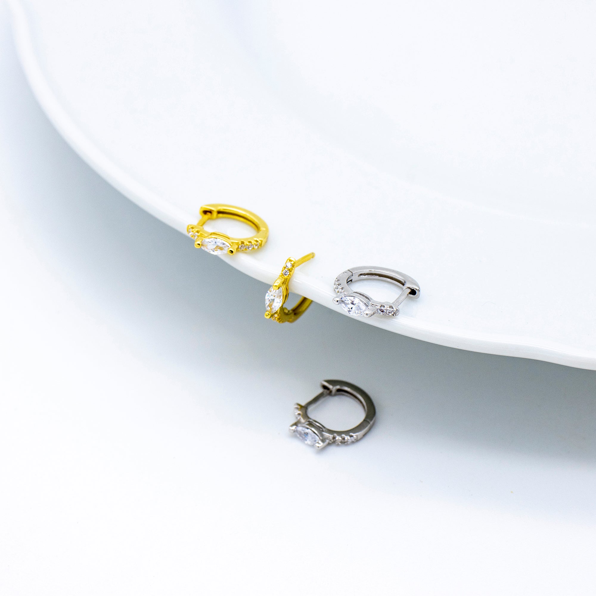 Die Ohrringe sind mit einem ovalen Centerstein und weißen Zirkonia-Steinen im Pavé-Stil von Hand besetzt. Sie ist hochwertig aus 925er Sterlingsilber gestaltet und besitzt Clip-Verschluss, mit dem sie sich einfach und sicher anlegen lässt. Im zeitlosen, geometrischen Stil ist sie einfach und nach Belieben mit verschiedenen Ohrringen, Ear Cuffs und weiterem Ohrschmuck kombinierbar.
