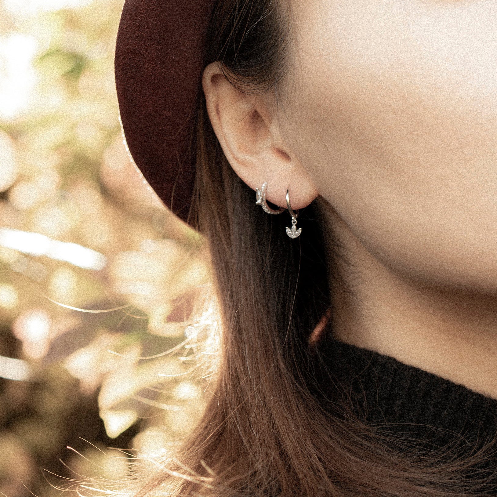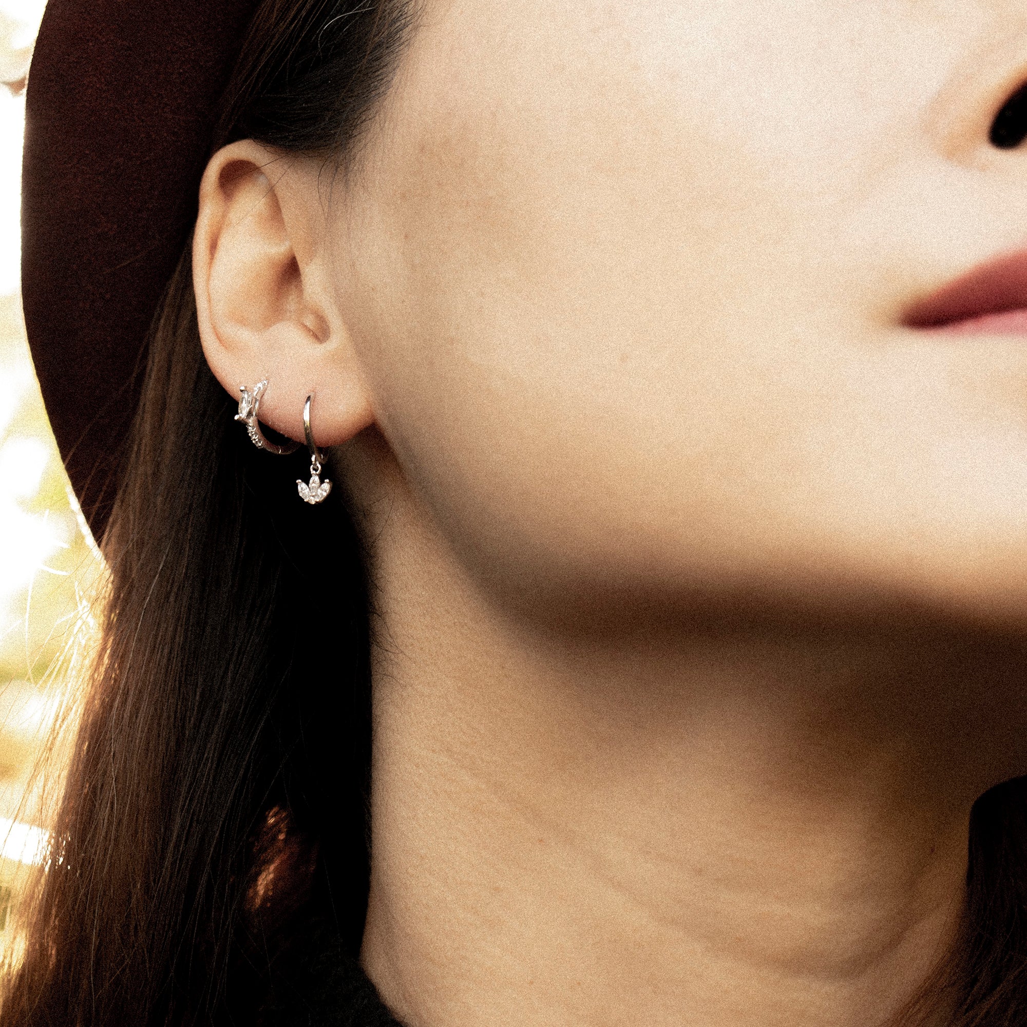 Die Ohrringe sind mit einem ovalen Centerstein und weißen Zirkonia-Steinen im Pavé-Stil von Hand besetzt. Sie ist hochwertig aus 925er Sterlingsilber gestaltet und besitzt Clip-Verschluss, mit dem sie sich einfach und sicher anlegen lässt. Im zeitlosen, geometrischen Stil ist sie einfach und nach Belieben mit verschiedenen Ohrringen, Ear Cuffs und weiterem Ohrschmuck kombinierbar.