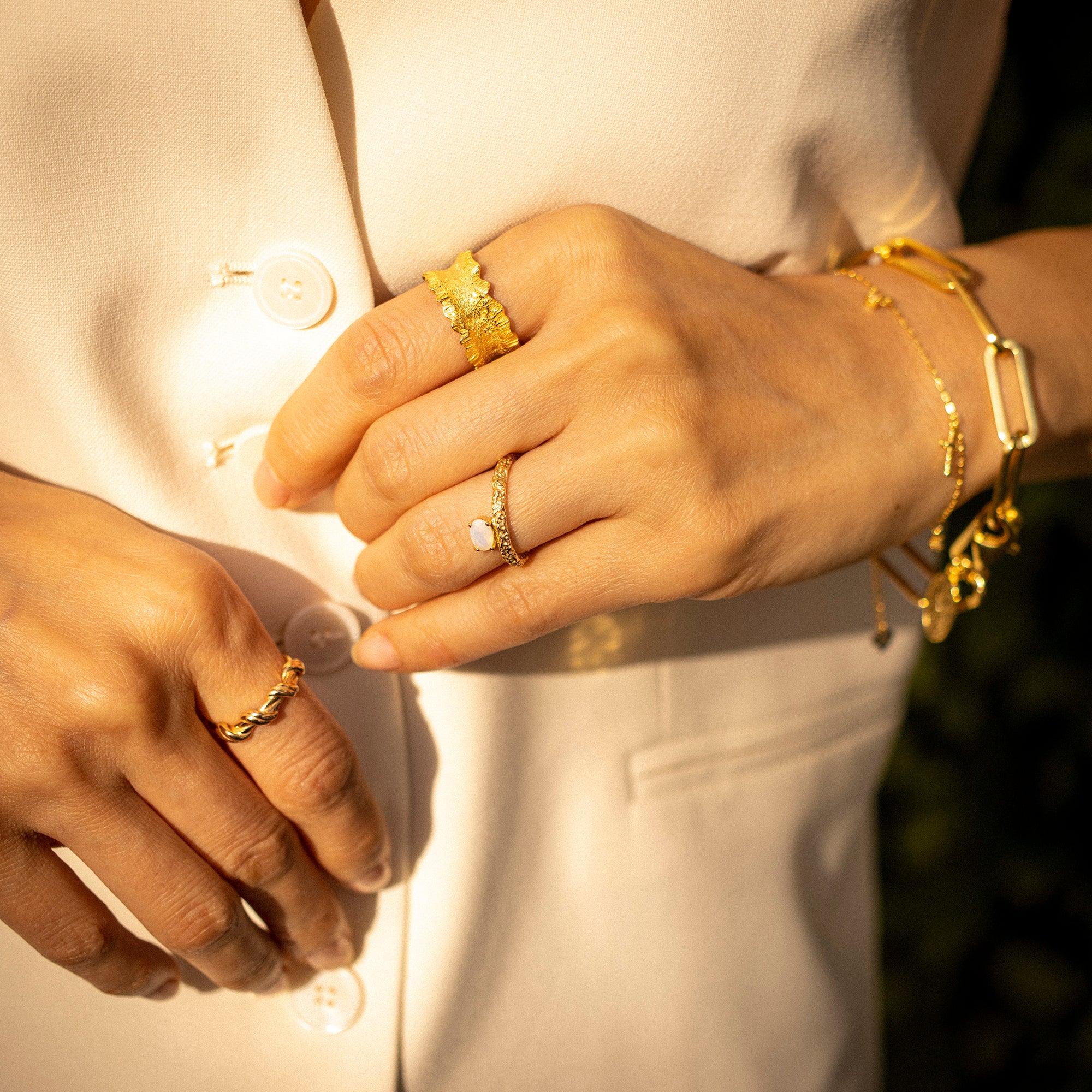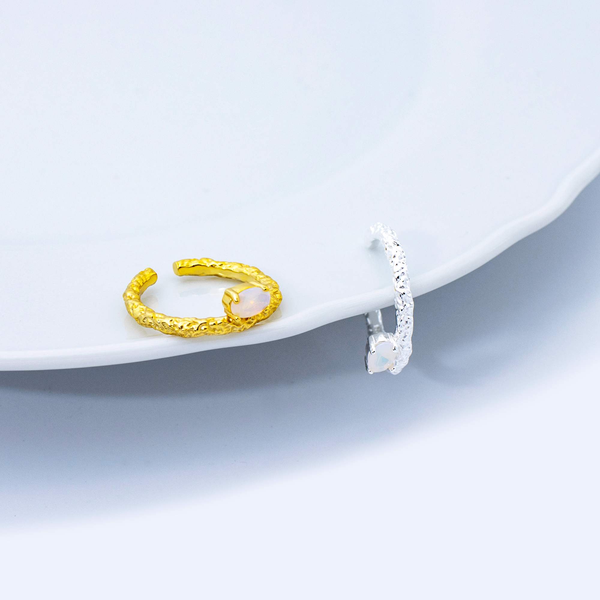 'ODELIA' ist ein dezenter Damenring aus 925 Silber mit natürlichem Look. Eine niedliche Opal-Steinverzierung, die am Ringkopf sitzt, sorgt für alle Highlights und spricht zarte Liebeserklärung. Dieser Ring ist absolut ein modisches Accessoire, das an jedem Finger eine Aussage machen wird. Er ist auch ein luxuriöses Geschenk für jeden besonderen Anlass.
