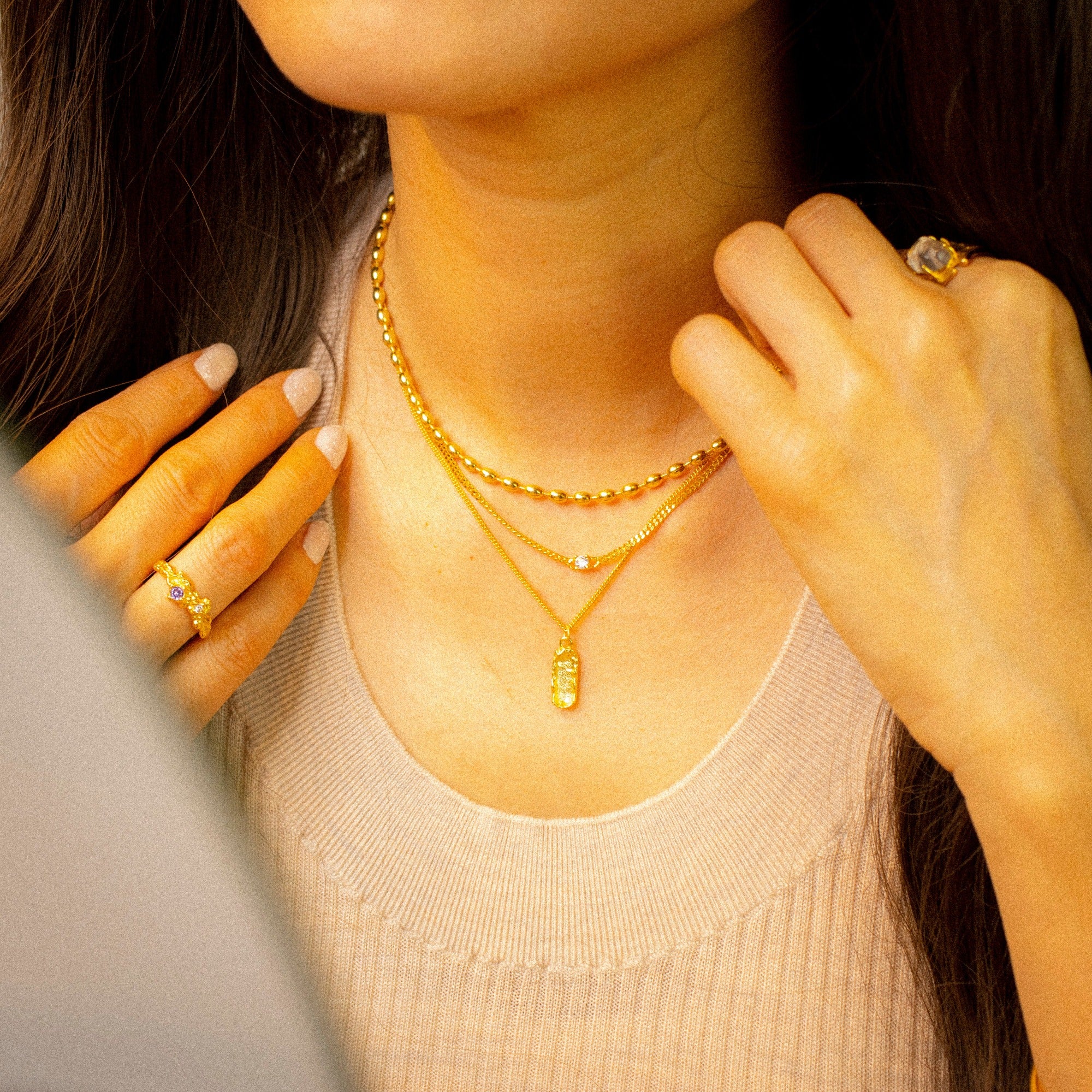 'ORIZA' ist eine Damenkette mit Quader Anhänger. Mit einer rauen, texturierten Oberfläche besticht der Anhänger durch individuellen Charakter und modernen Look.