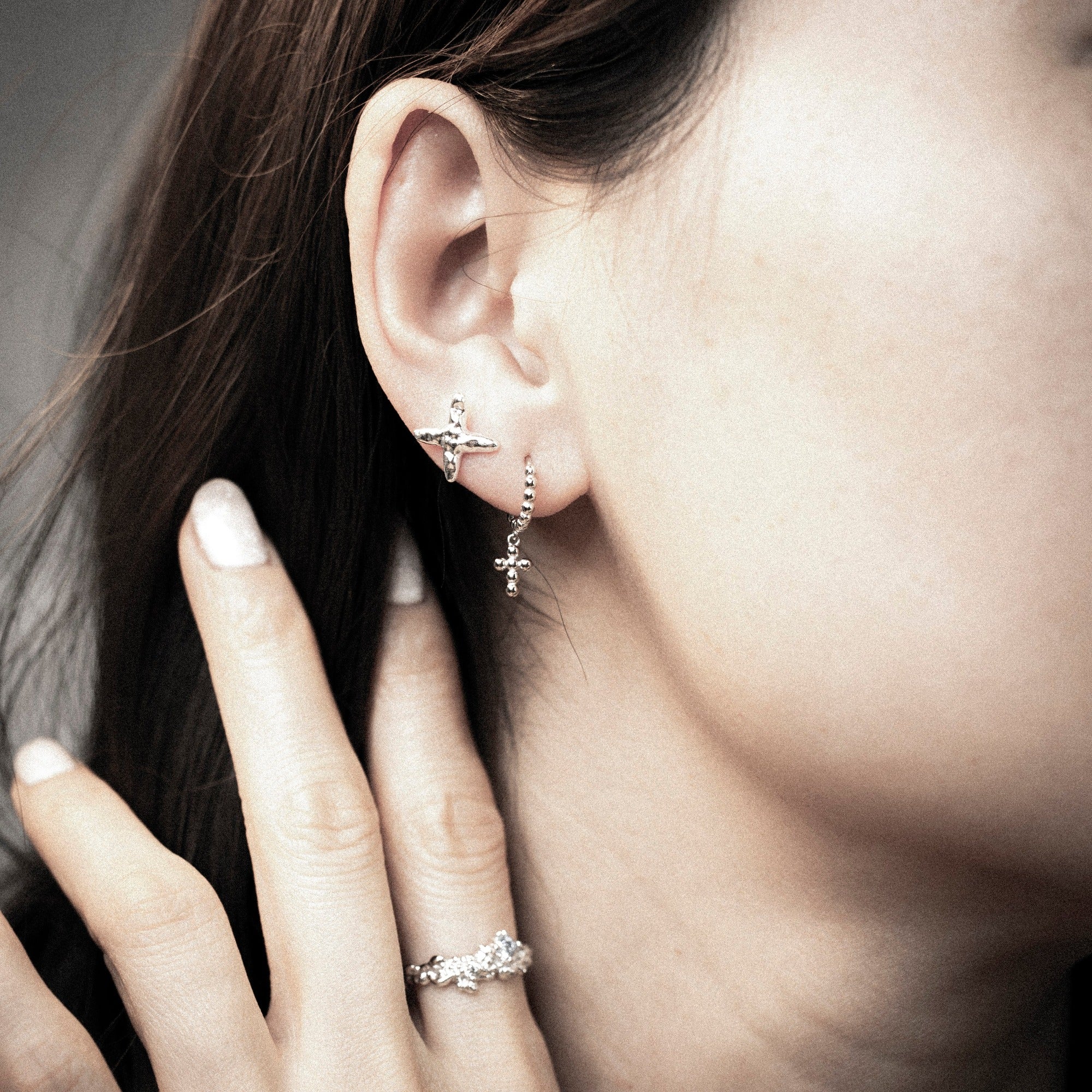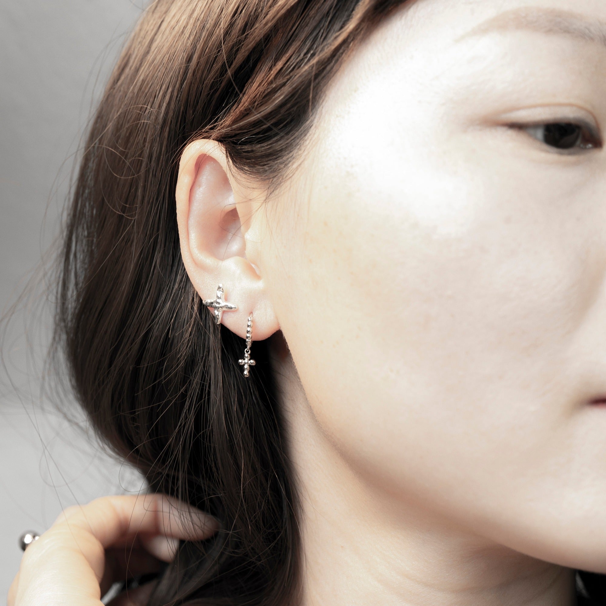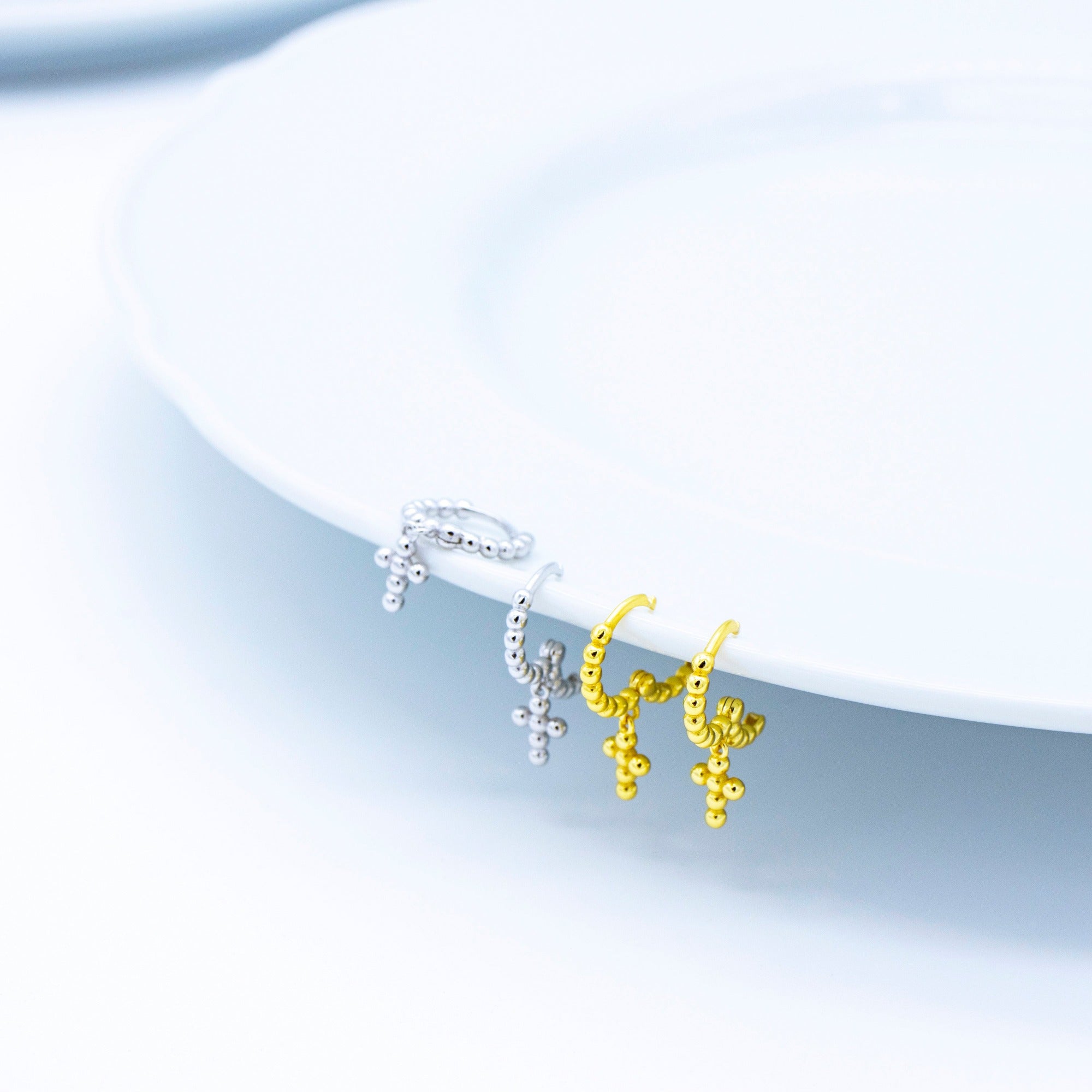 Ein cooles Upgrade fürs Ohr: Diese Creolen mit feinem Kreuzanhänger zieren eine grafische Kugelstruktur. Die fein ausgearbeitete Kugeloptik lenkt den Blick gekonnt auf die Ohrringe. Sie lassen sich nach Belieben einzeln tragen oder mit anderen Ohrringen kombinieren.