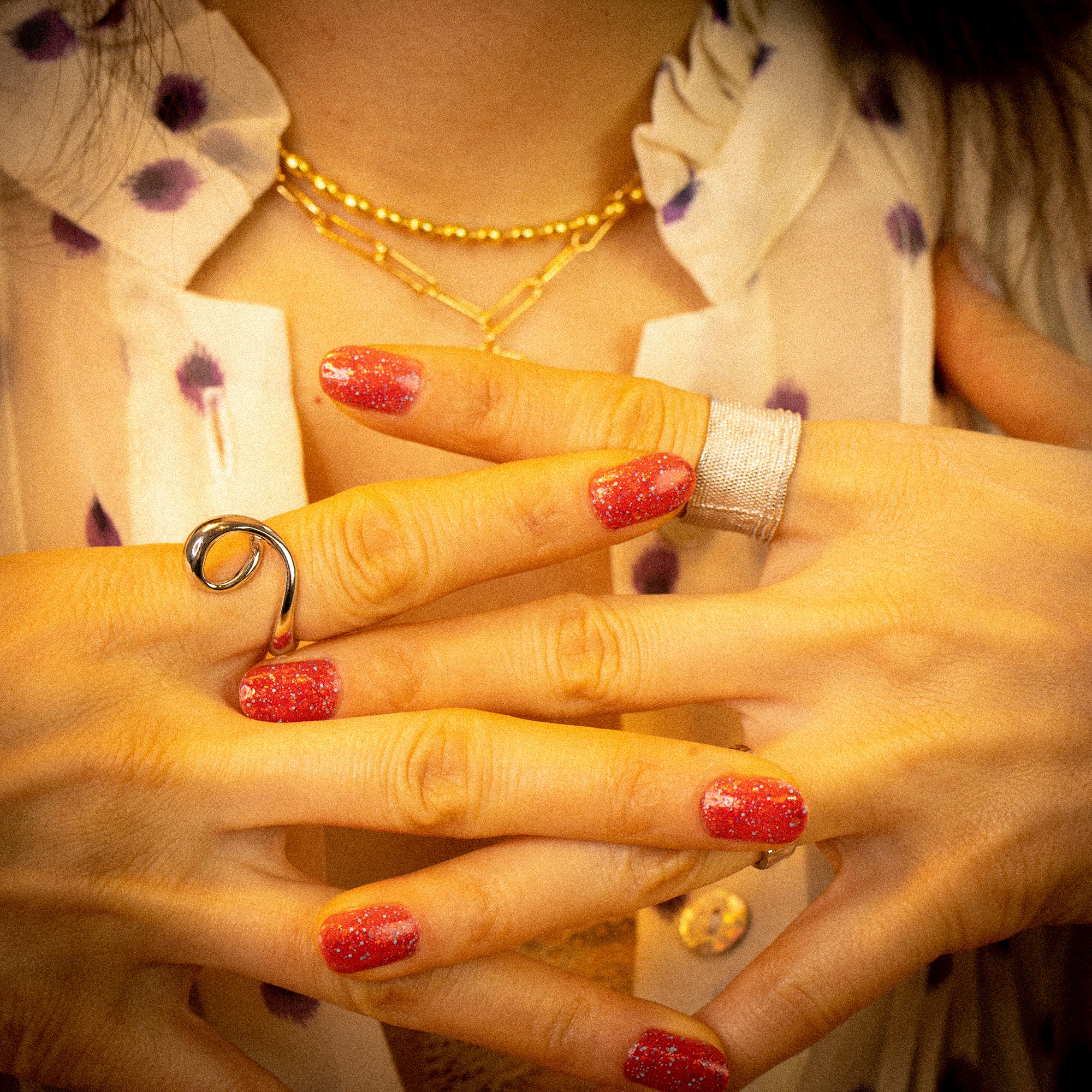 Der filigrane Ring vereint zarte Eleganz mit der raffinierten Dynamik abstrakter Linien. Dieses Schmuckstück ist ein Hingucker und verleiht jedem Outfit eine edle Note. Schlicht, elegant und zugleich raffiniert, ist er ein vielseitiges Schmuckstück für deine Sammlung.