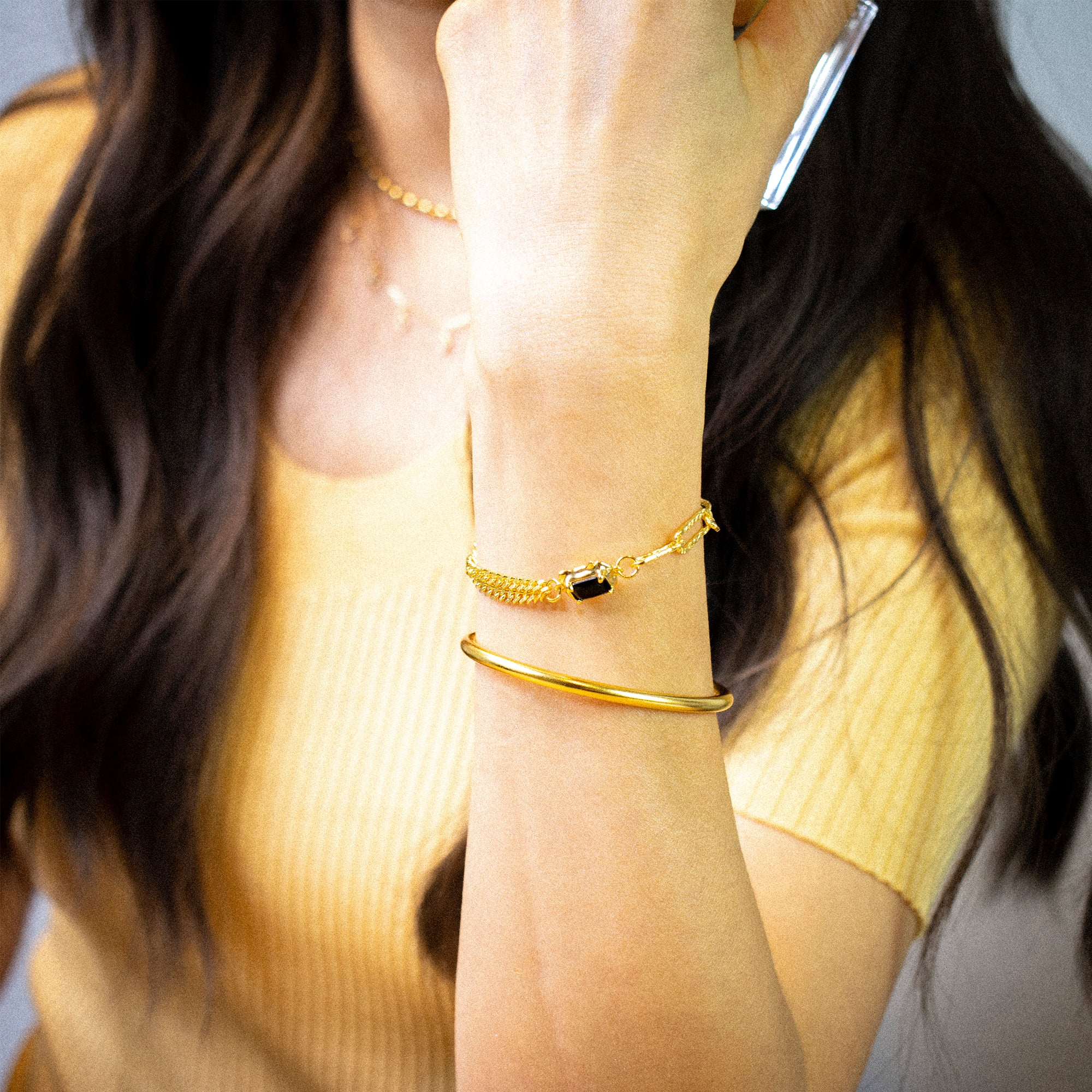 Der Goldarmreif aus hochwertigem 925er Sterling Silber überzeugt durch sein klares, minimalistisches Design. Mit seiner schlanken Form und dem zeitlosen Glanz wird er schnell zu deinem neuen Lieblingsstück für jeden Tag.