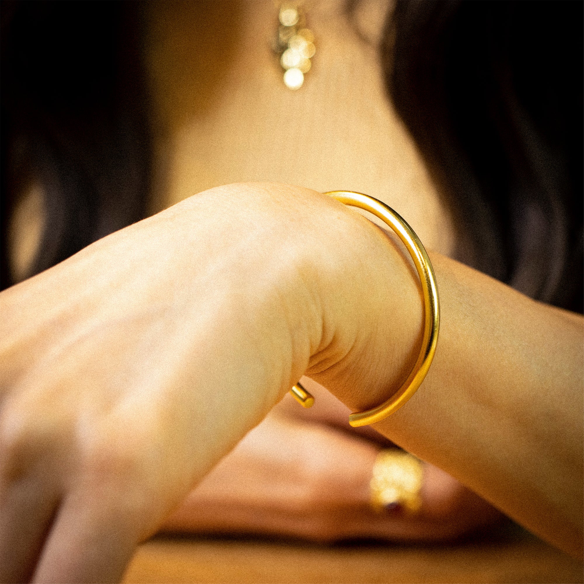 Die schlichte Armspange lässt sich mühelos mit anderen Armbändern oder Armreifen kombinieren. Ob im Alltag, im Büro oder zu besonderen Anlässen – der Armreif setzt einen dezenten, aber eleganten Akzent und passt zu jedem Outfit.
