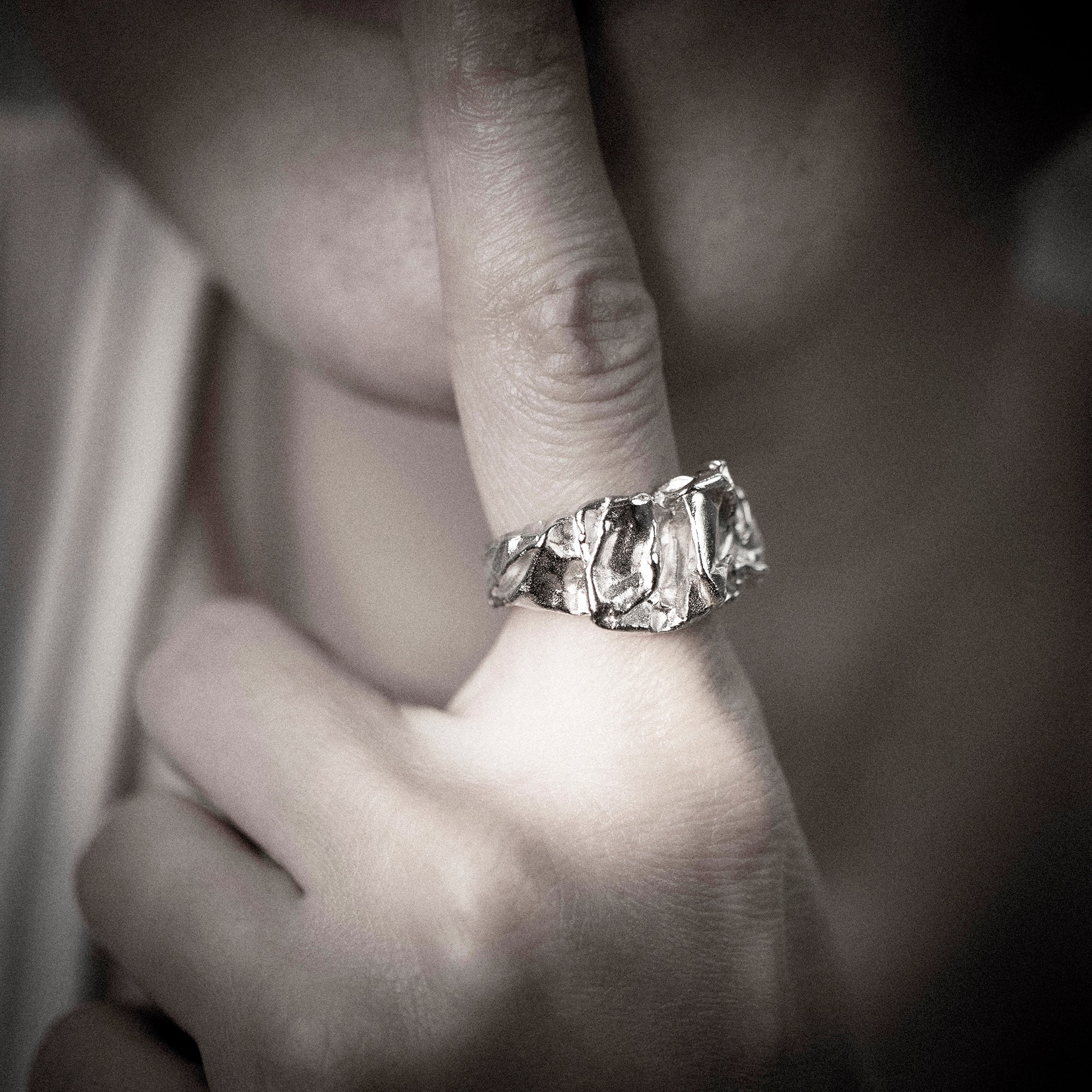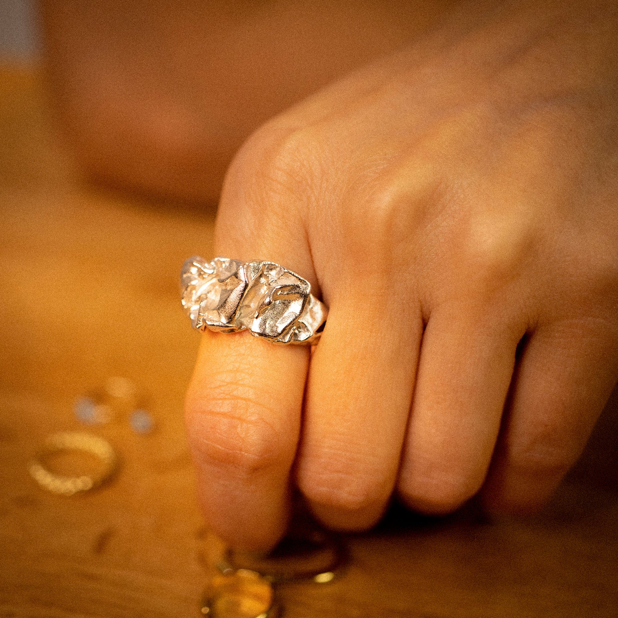 WINNI Ausgefallener Silberring wie zerknittertes Papier